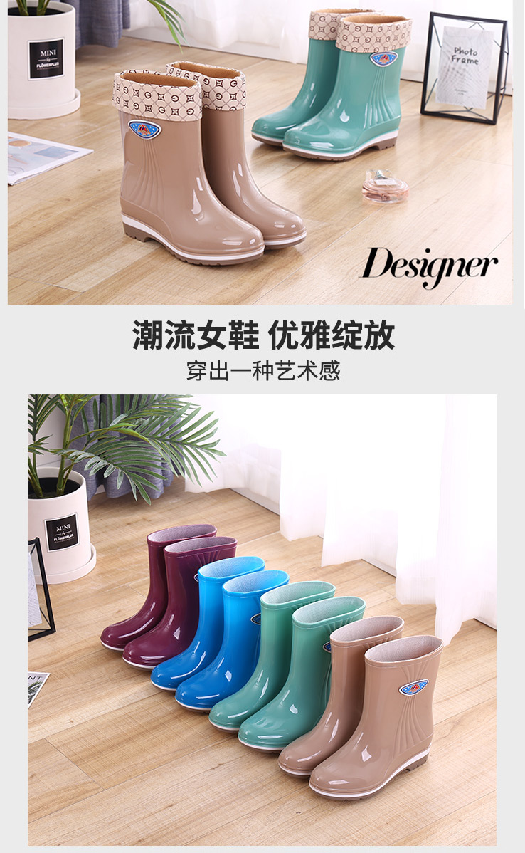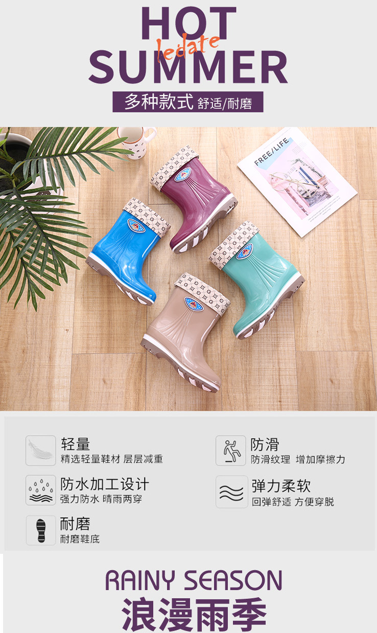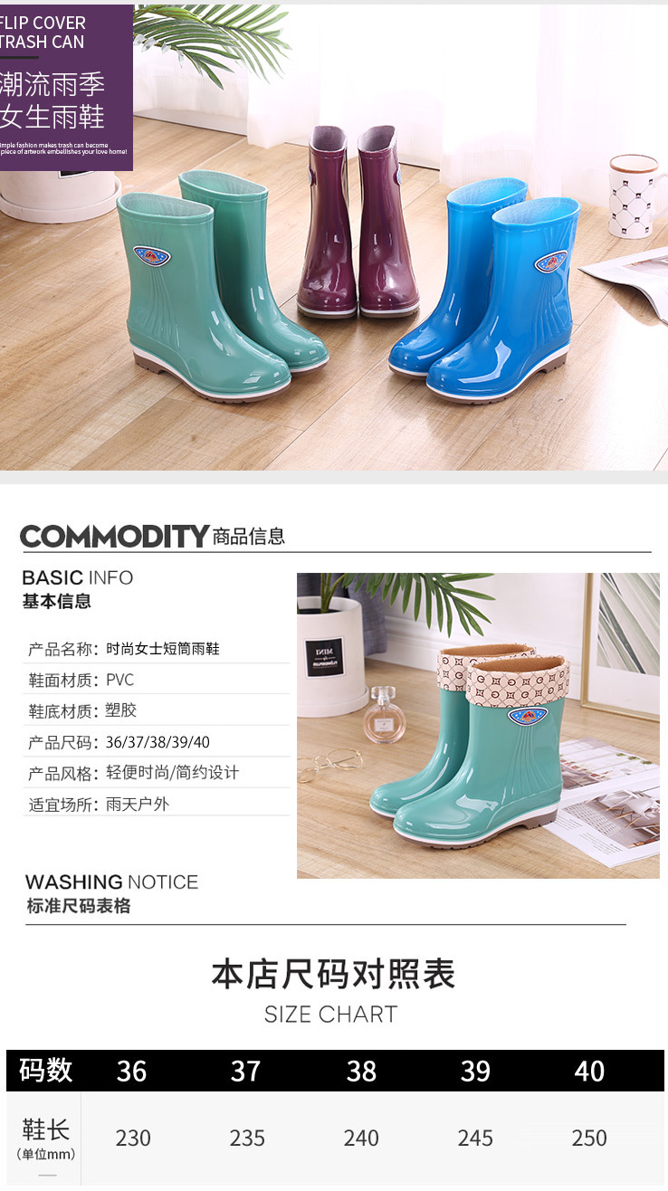 짧은 비 장화 여성의 물 장화 레인 부츠 패션 방수 신발 해외 무역 주방 미끄럼 방지 고무 신발 작업 오버 슈즈 여름