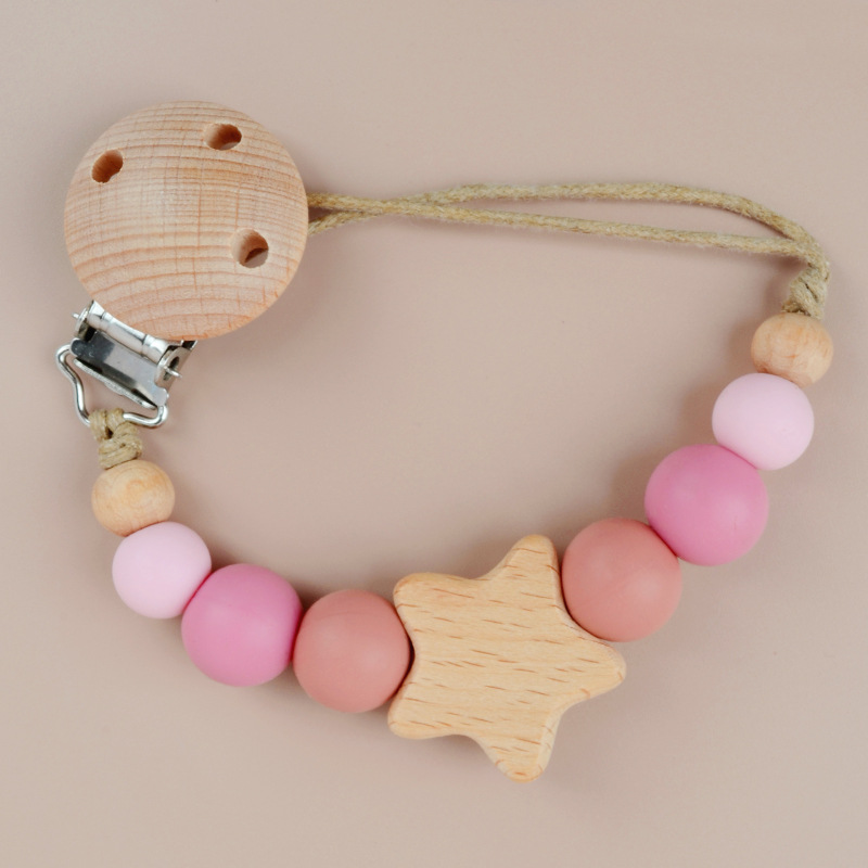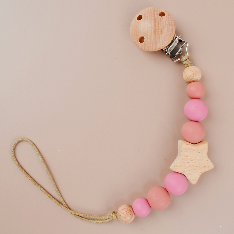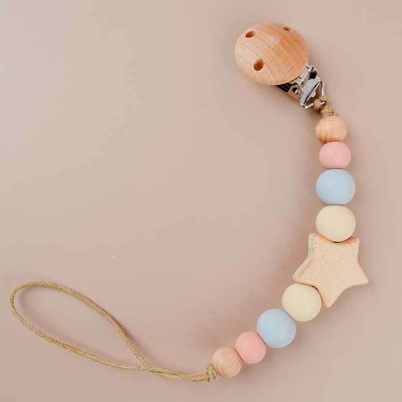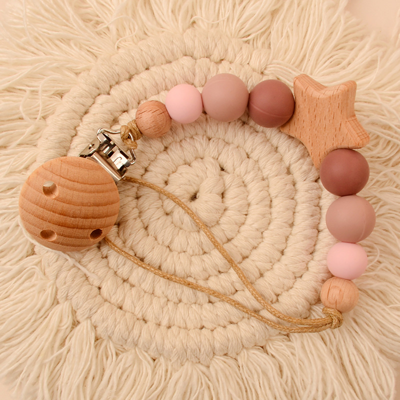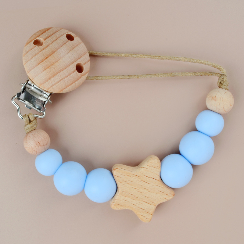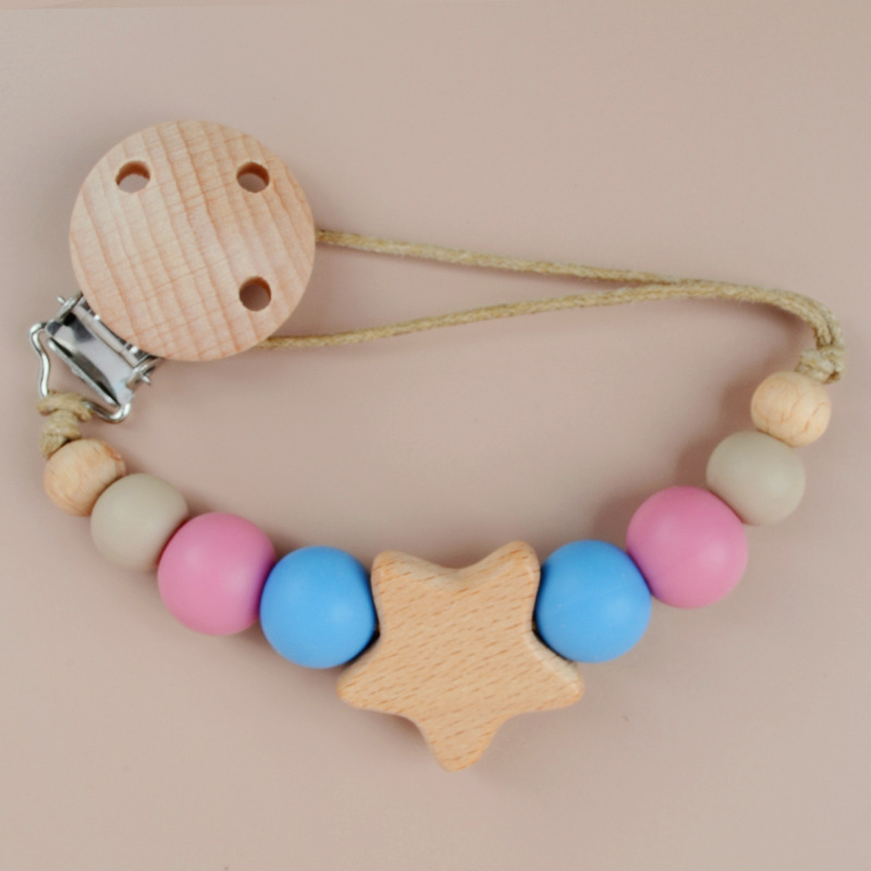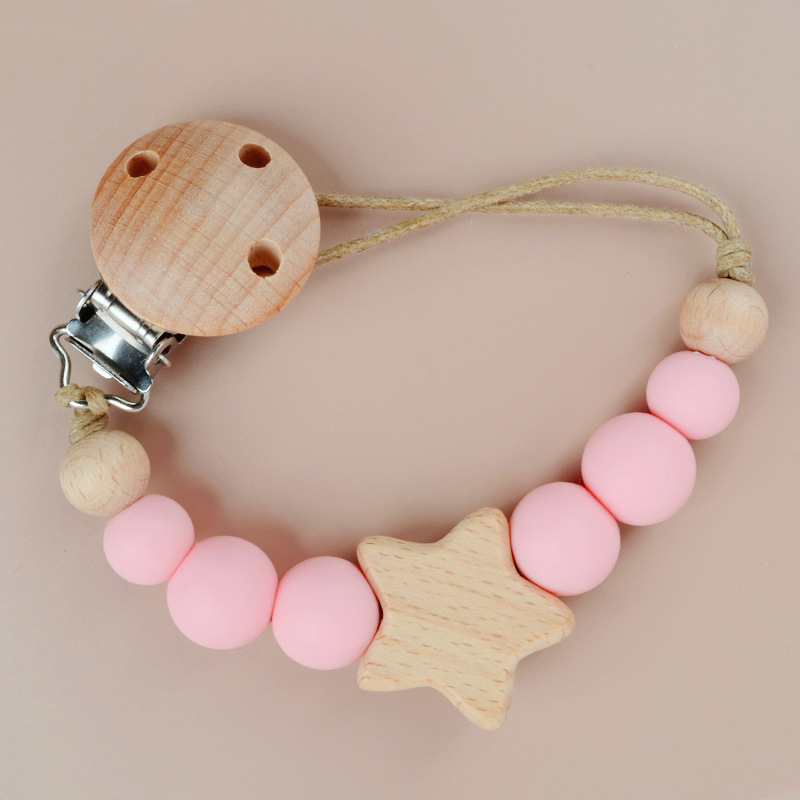 AliExpress 뜨거운 판매 단일 제품 너도밤 나무 오각형 스타 푸드 등급 낙하 방지 체인 치아 젤 젖꼭지 체인 INS