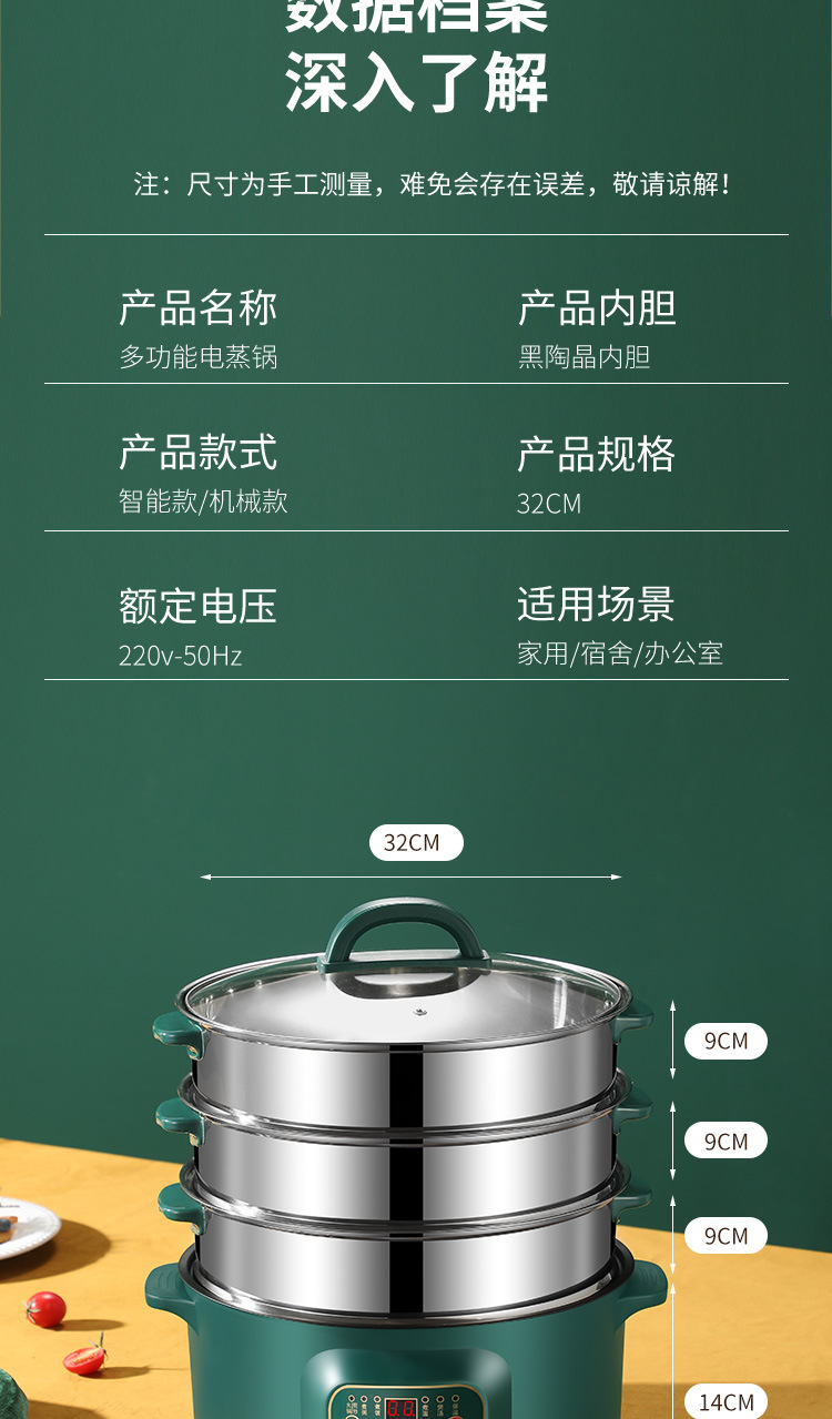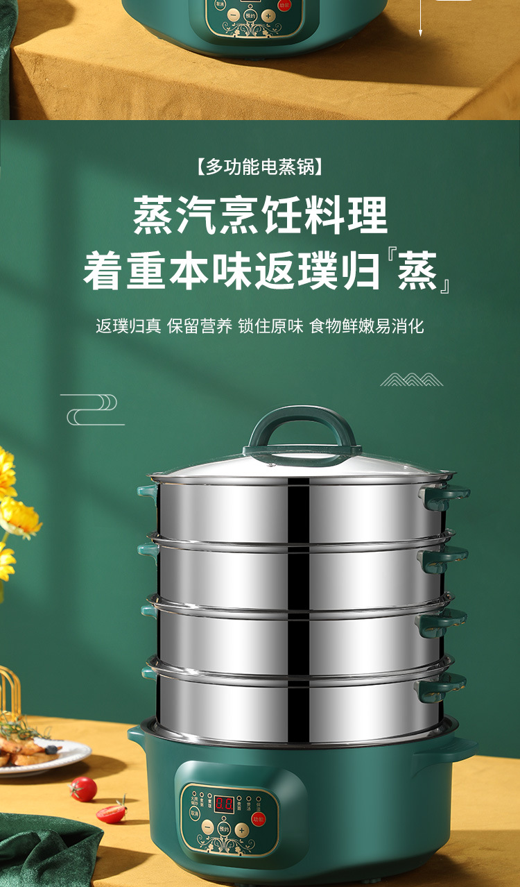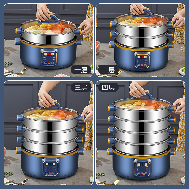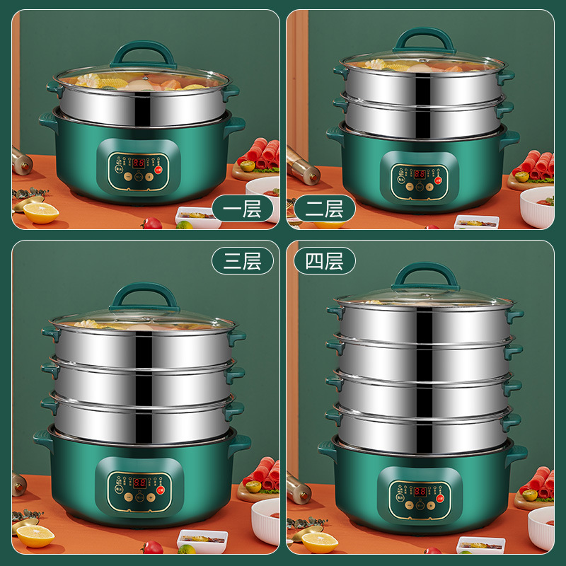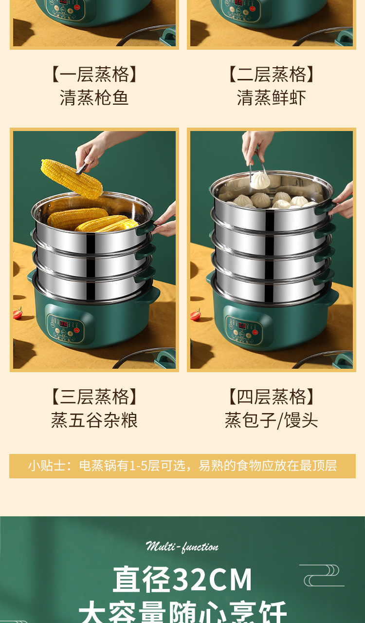 전기 찜기 32cm 대용량 가정용 스테인레스 스틸 찜기 일체형 3 층 다층 다기능 아침 식사 기계 자동