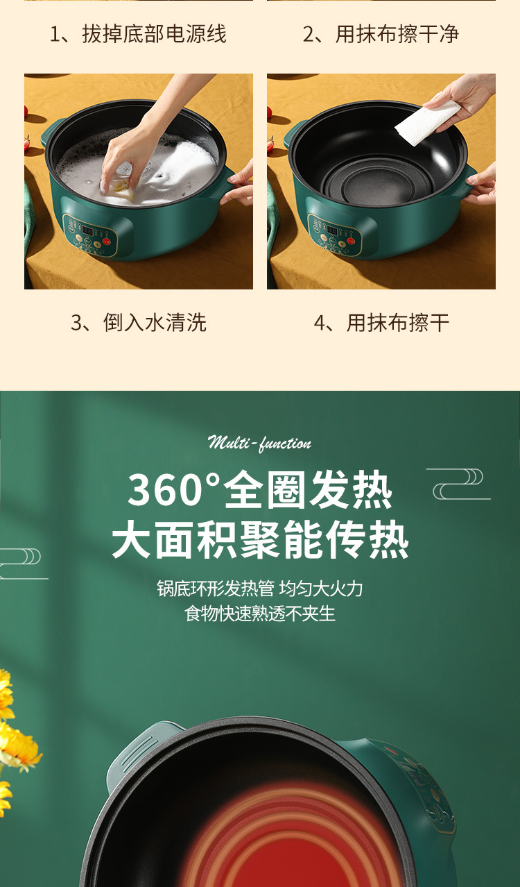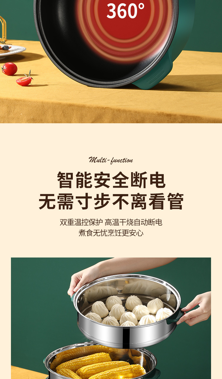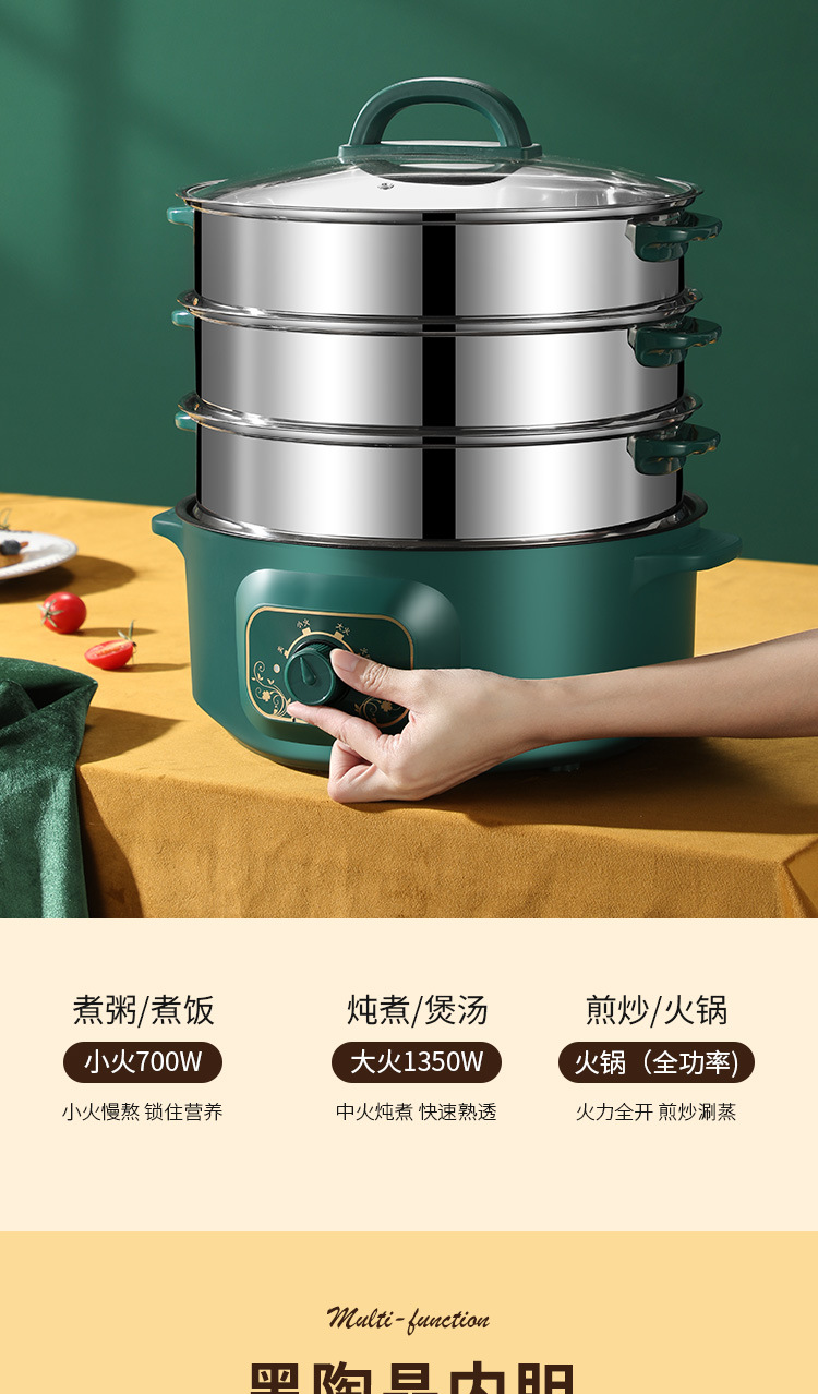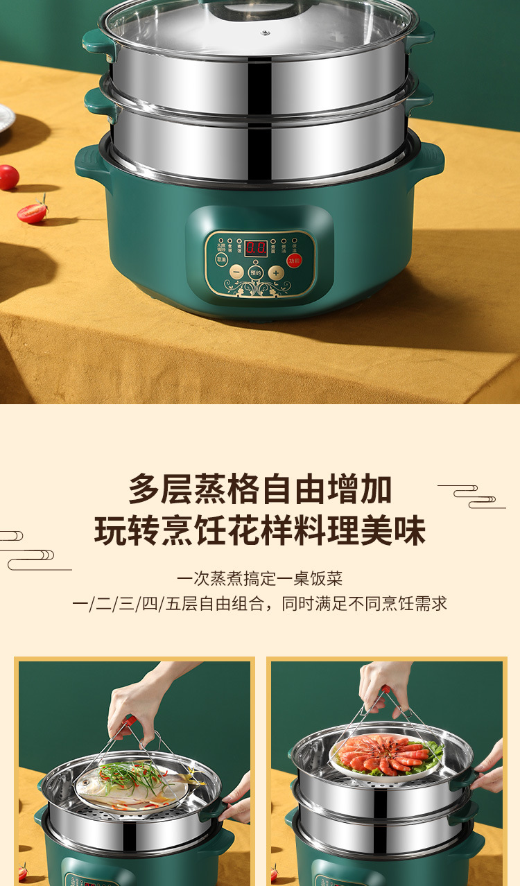 전기 찜기 32cm 대용량 가정용 스테인레스 스틸 찜기 일체형 3 층 다층 다기능 아침 식사 기계 자동