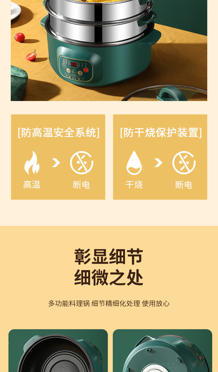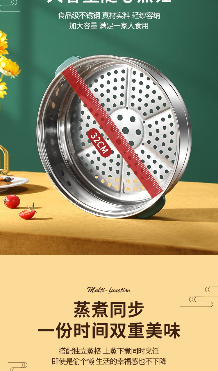 전기 찜기 32cm 대용량 가정용 스테인레스 스틸 찜기 일체형 3 층 다층 다기능 아침 식사 기계 자동스토어 가기
