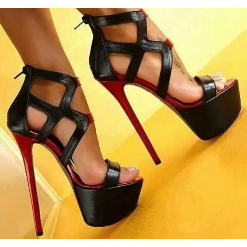 봄과 여름 2023 새로운 중공 둥근 머리 얇은 슈퍼 하이힐 샌들 여성용 섹시한 나이트 클럽 여성 신발 35-42 사이즈 신발스토어 가기