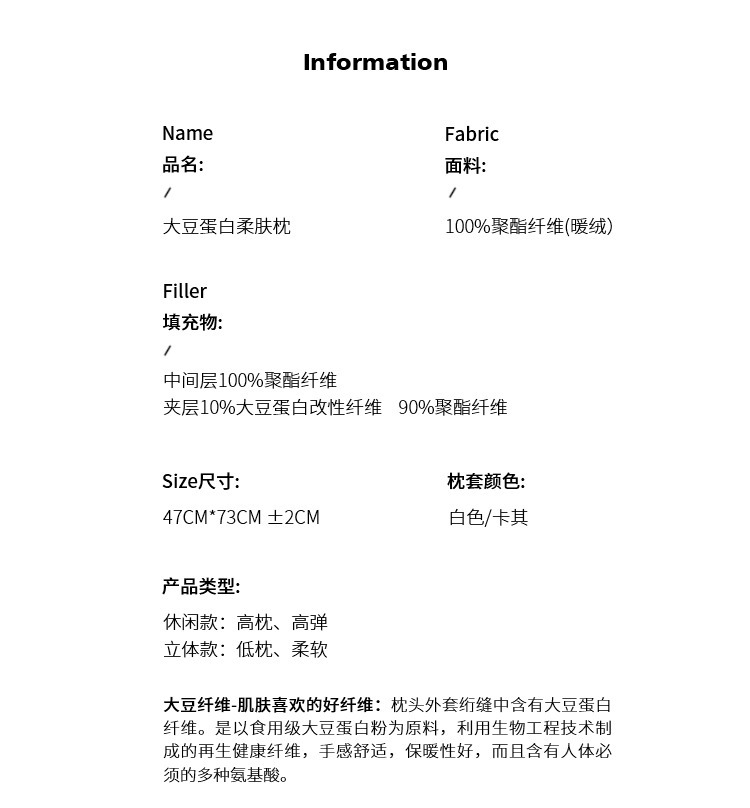 • 콩 단백질 연화 베개-싱글 사이드 카키