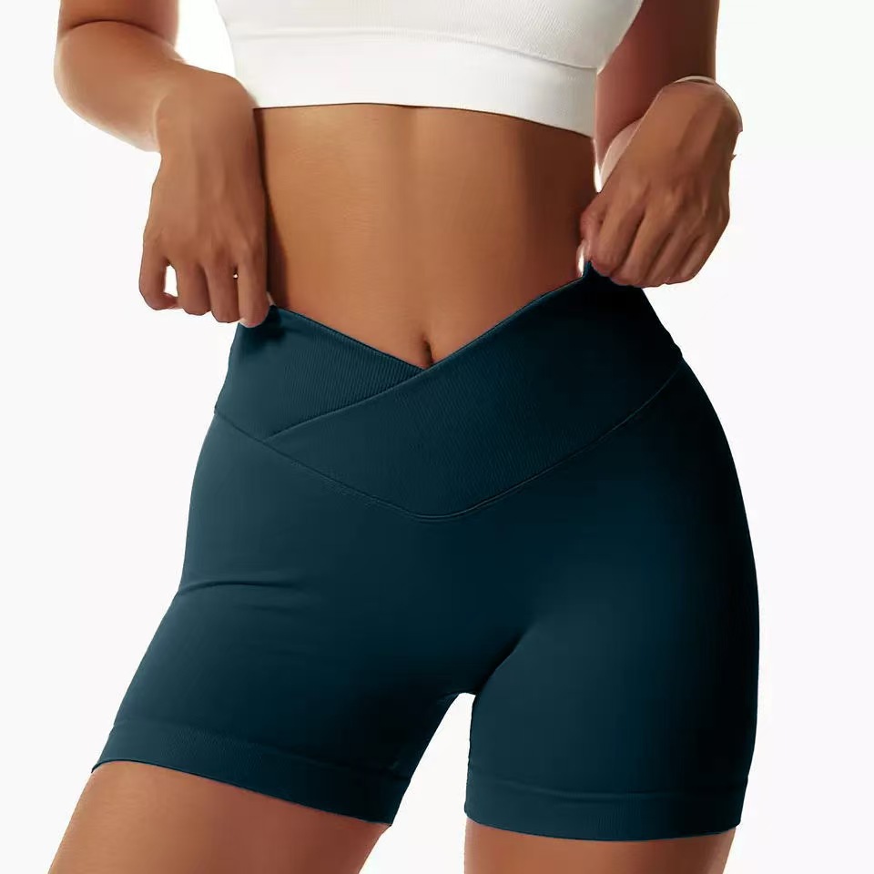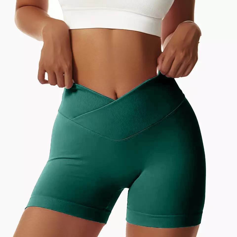 유럽과 미국 야외 요가 반바지 탄성 높은 허리 달리기 피트니스 꽉 복숭아 엉덩이 원활한 스포츠 반바지 여성용