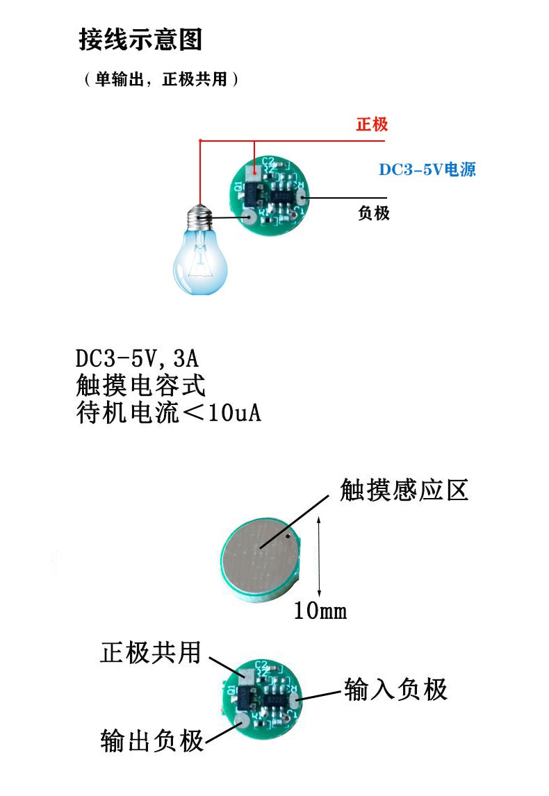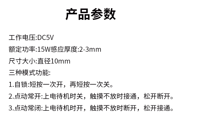DC5V 터치 센서 스위치 USB 전원 10mm 마이크로 DC 엄지 라이트 미러 LED 미러 프론트 라이트 터치 스위치