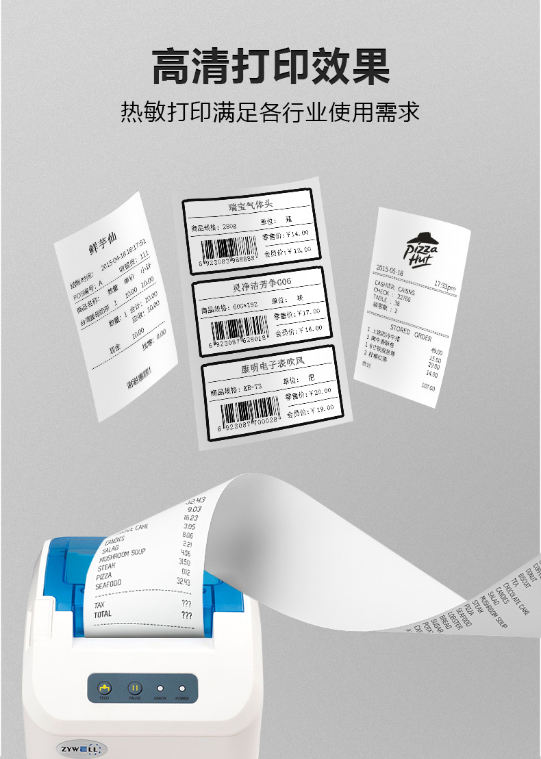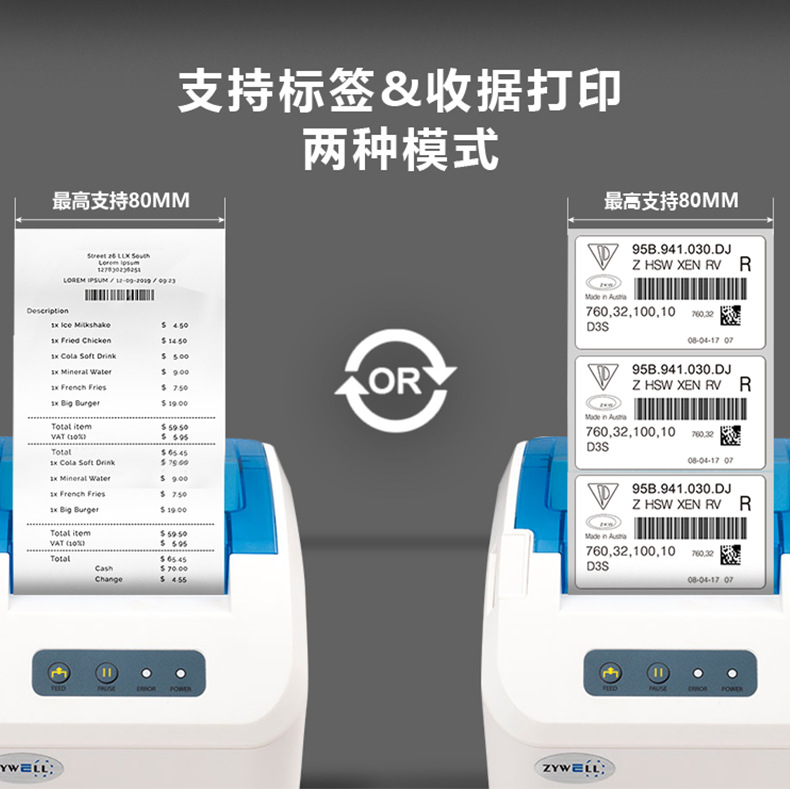 Jewel JW609 80mm 열 라벨 프린터 POS 가격 바코드 라벨 열전 사 프린터 바코드스토어 가기