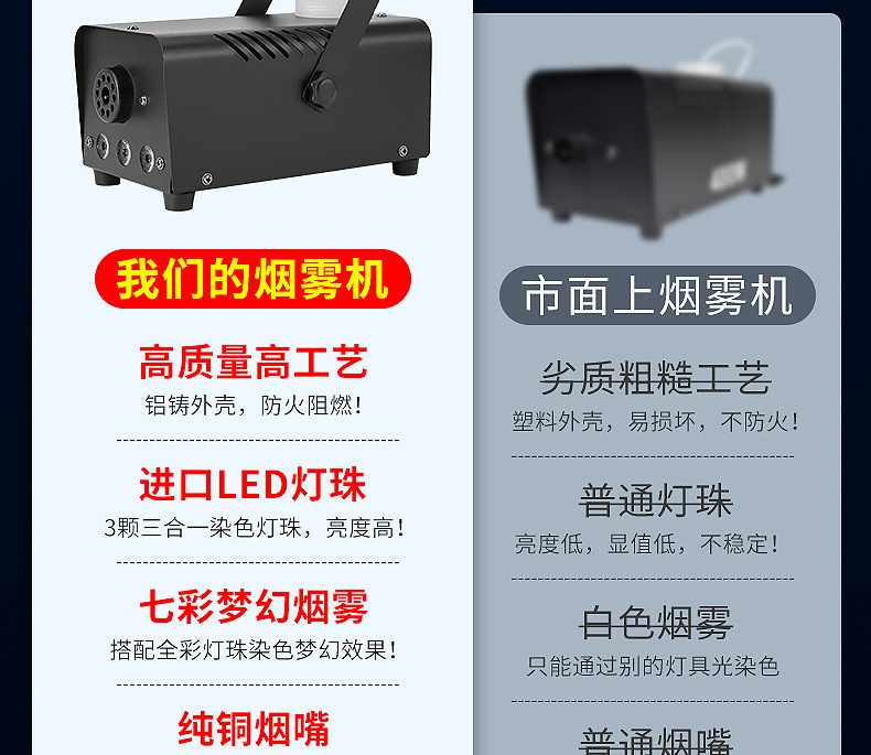 • 【500W/듀얼 컨트롤】 7가지 색상 연기 머신 + 연료 오일 2병