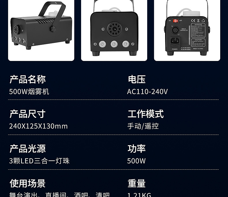 파이튼 크로스보더 핫세일 500와트 LED 다채로운 연기기 소형 휴대용 무대 원격 제어 연기기