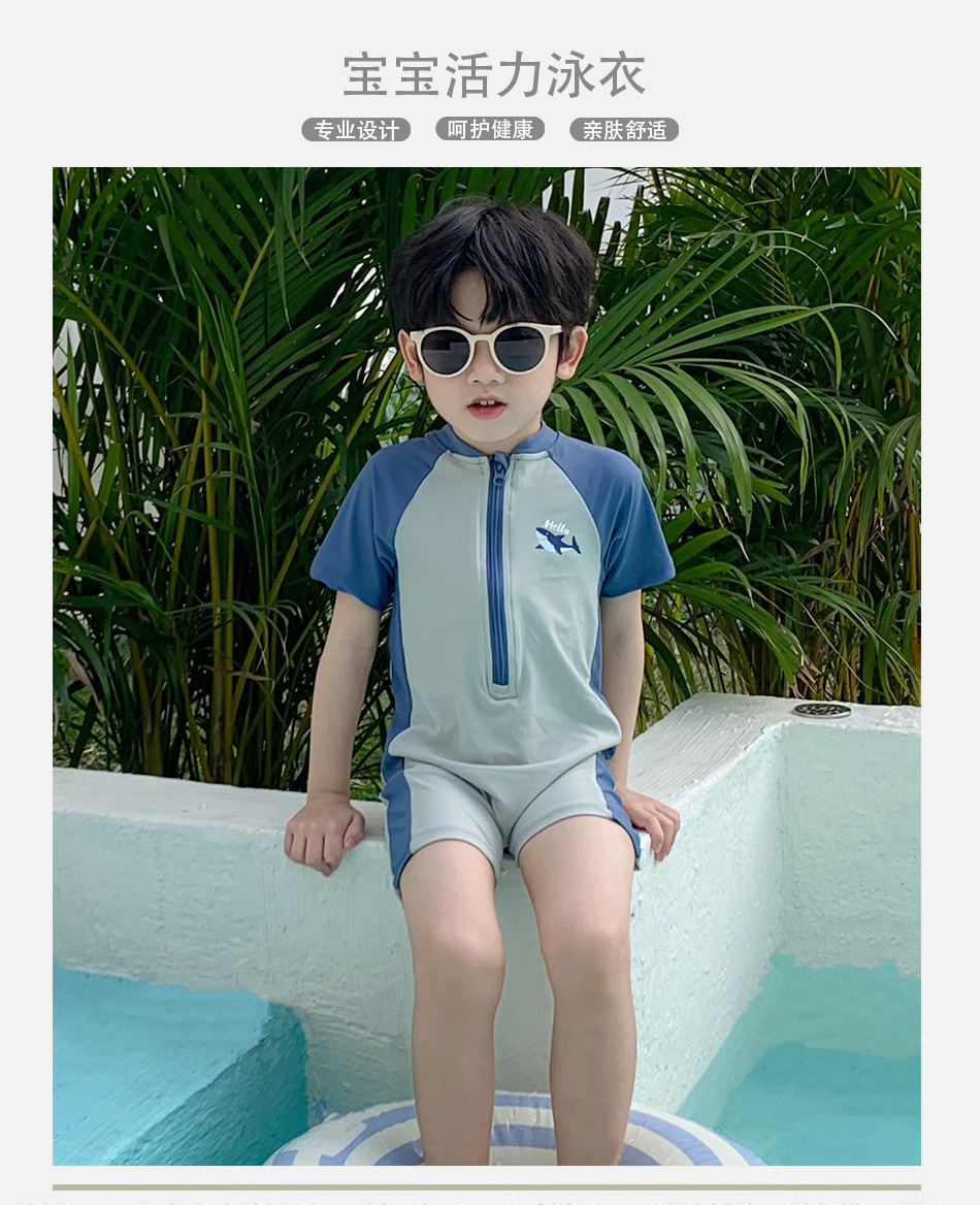 어린이용 원피스 반팔 수영복, 여름용 귀여운 아기 상어 자외선 차단 속건성, 유아 및 어린이 해변 휴가 수영복스토어 가기