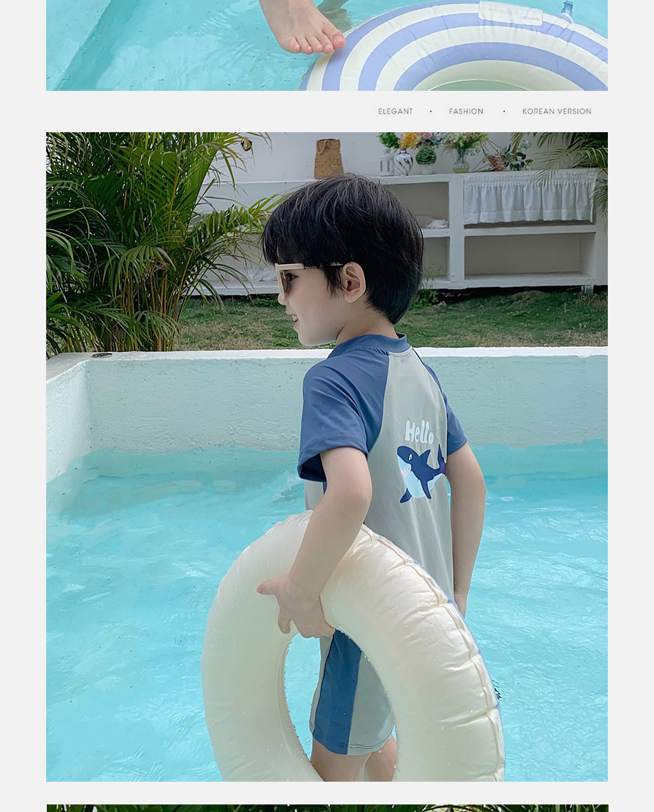 어린이용 원피스 반팔 수영복, 여름용 귀여운 아기 상어 자외선 차단 속건성, 유아 및 어린이 해변 휴가 수영복
