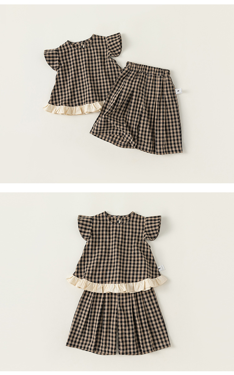 방선택 아동복 여아 여름옷 플라잉 슬리브 상의 와이드 팬츠 유아 투피스 체크무늬 아동복스토어 가기