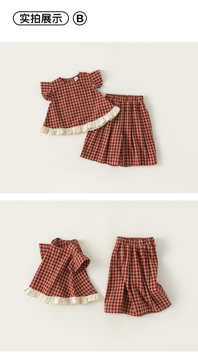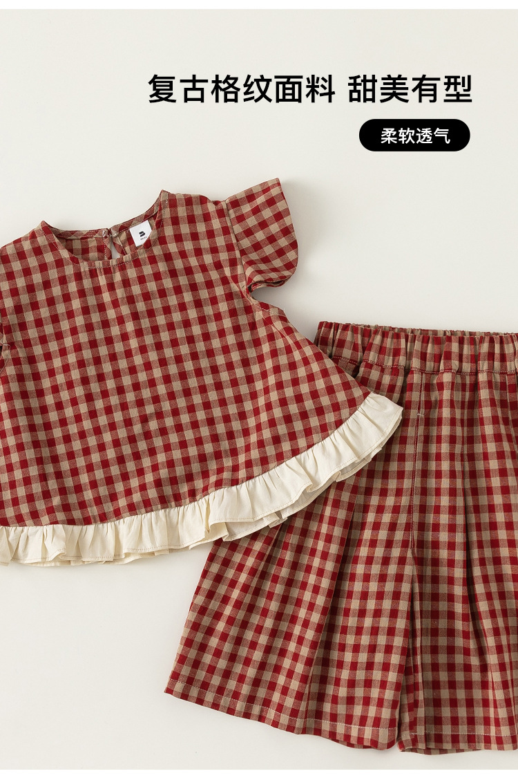 방선택 아동복 여아 여름옷 플라잉 슬리브 상의 와이드 팬츠 유아 투피스 체크무늬 아동복