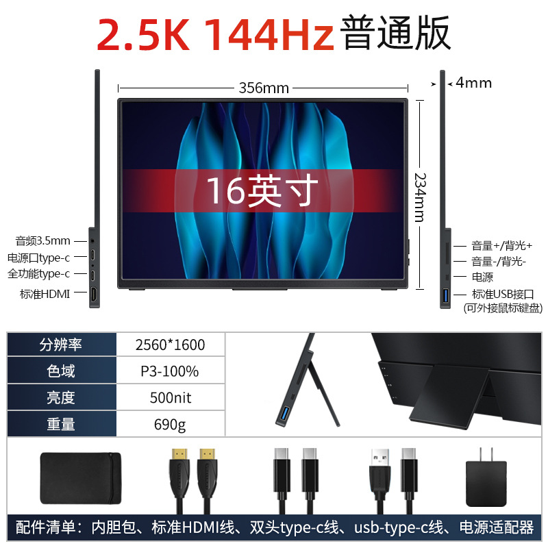 DIY定制 便携式显示器 屏幕 HDR 监视器 液晶 LG TYPE-C线接口 刷新率244Hz 17.3英寸