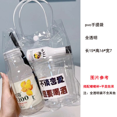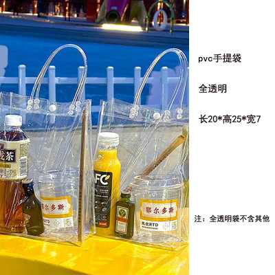 透明礼品袋 伴手礼袋 便利店调酒袋包装袋 摆摊透明塑料袋子 微醺饮料手拎 透明礼物包装袋 PVC手提袋