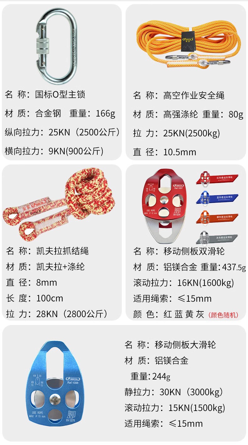 • 무거운 물체를 들어 올리기위한 세트 15 m 로프