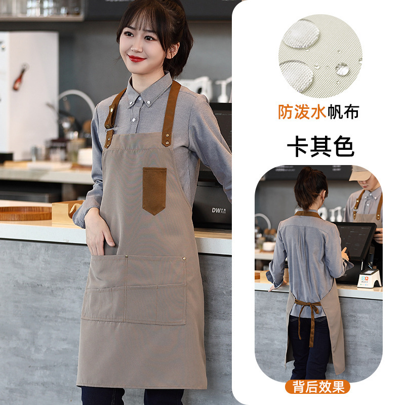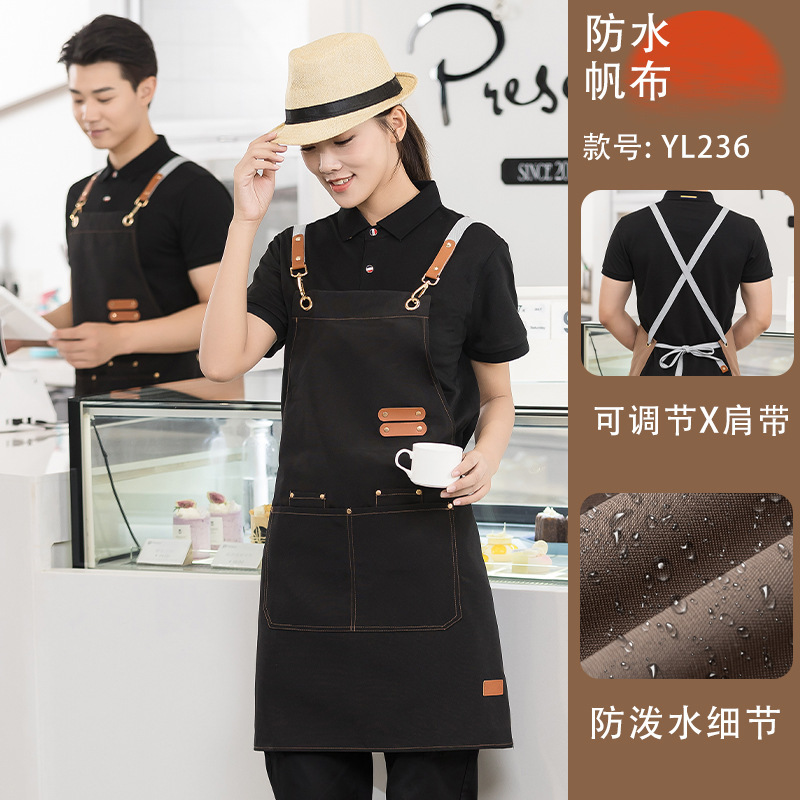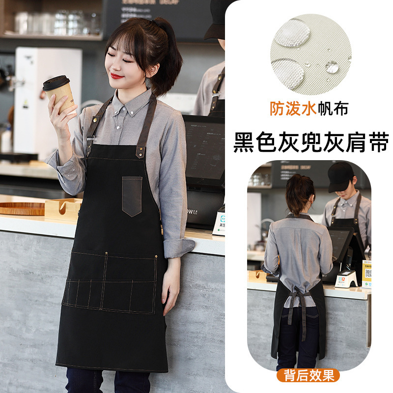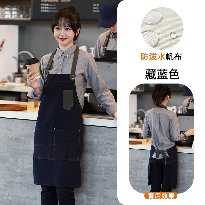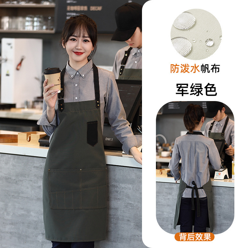 캔버스 방수 취사 특수 앞치마 세트 인쇄 로고 커피 밀크 티 네일 살롱 웨이터 남성과 여성을위한 작업복스토어 가기