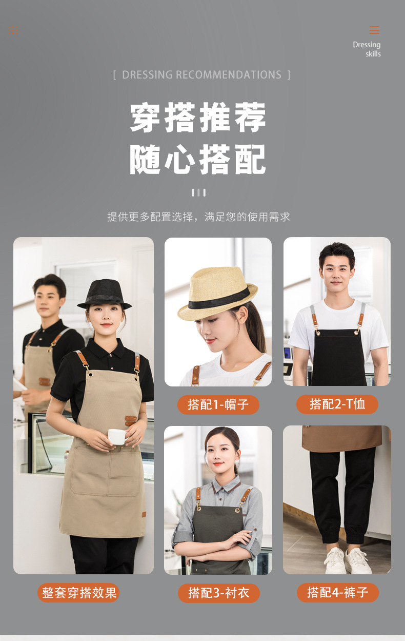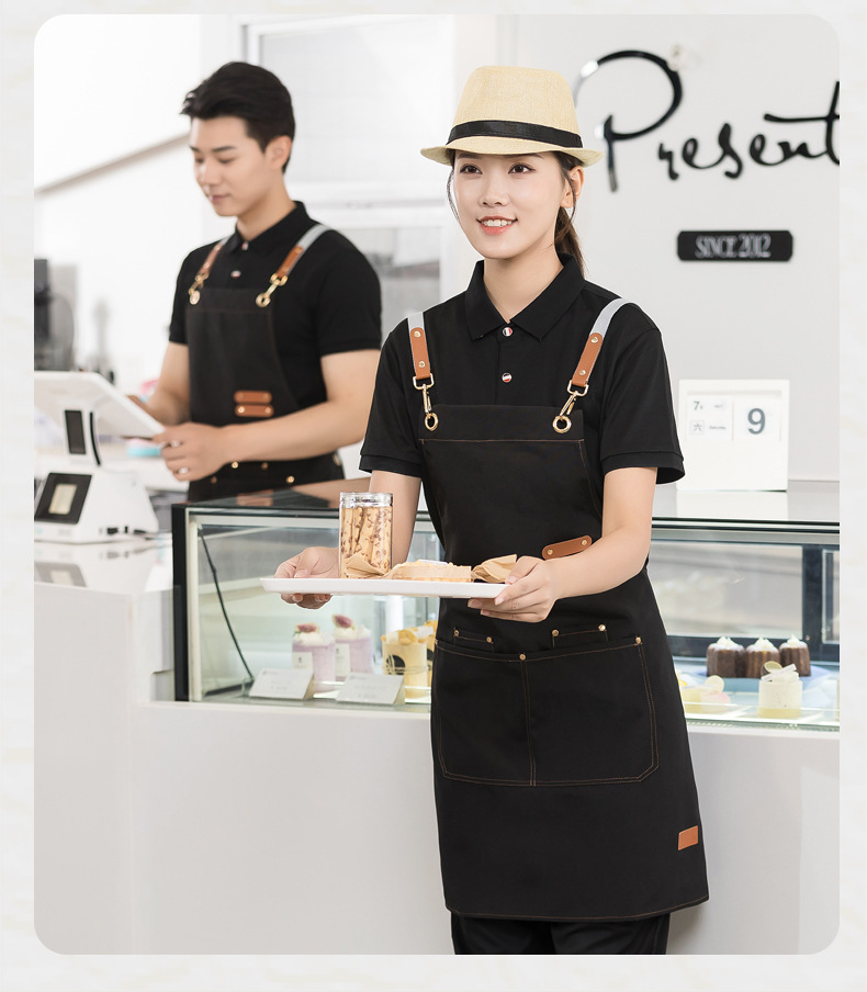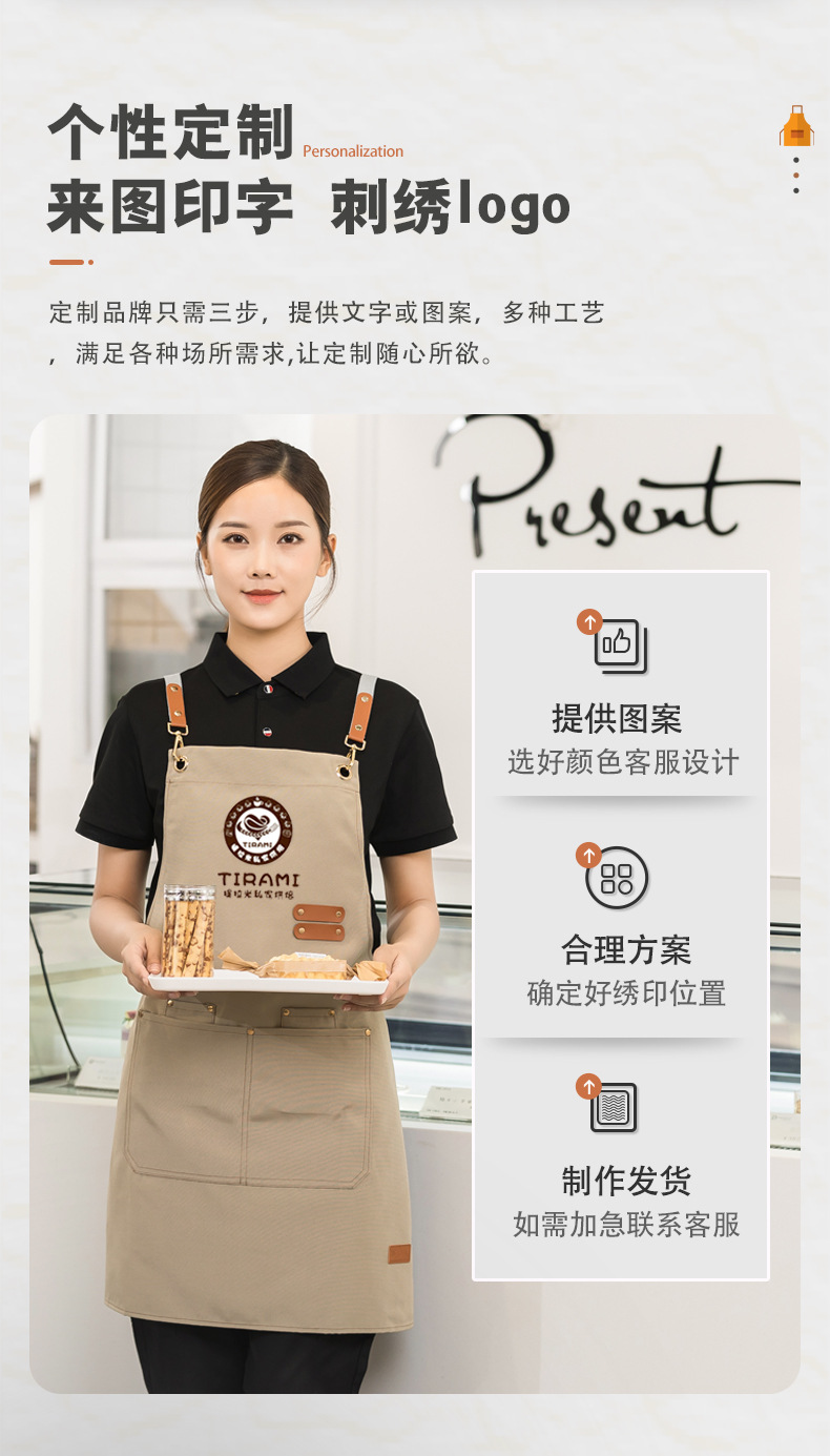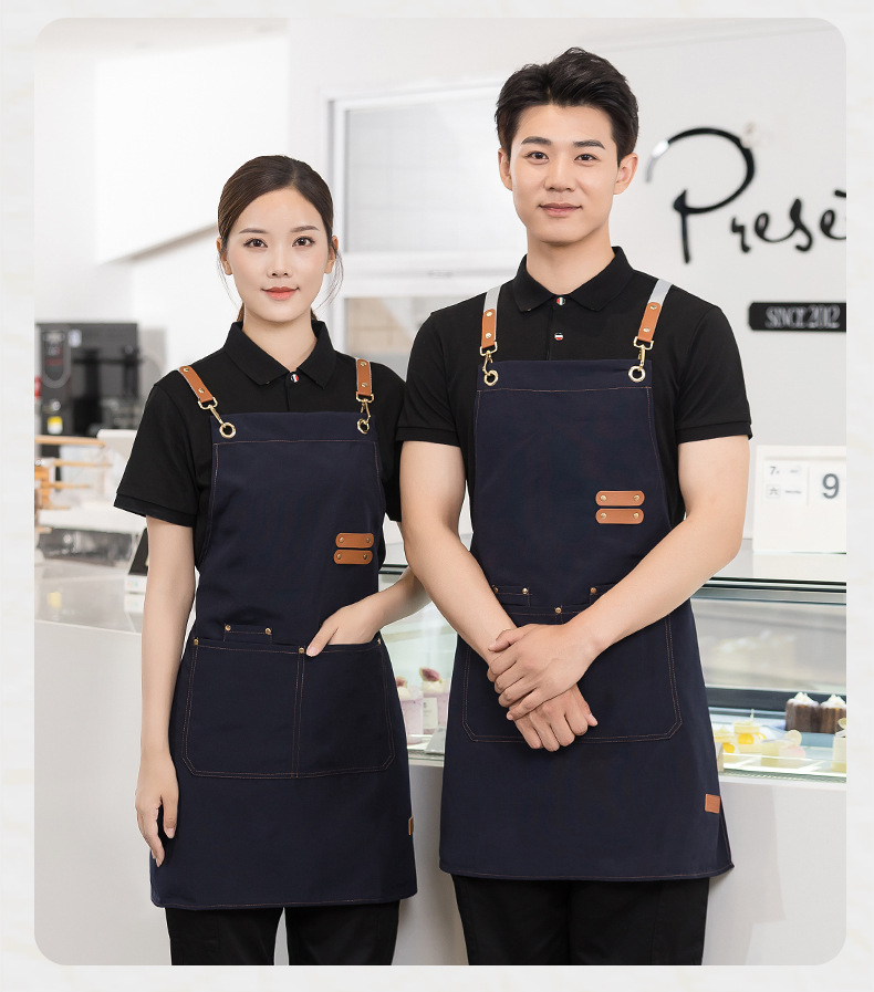 캔버스 방수 취사 특수 앞치마 세트 인쇄 로고 커피 밀크 티 네일 살롱 웨이터 남성과 여성을위한 작업복스토어 가기