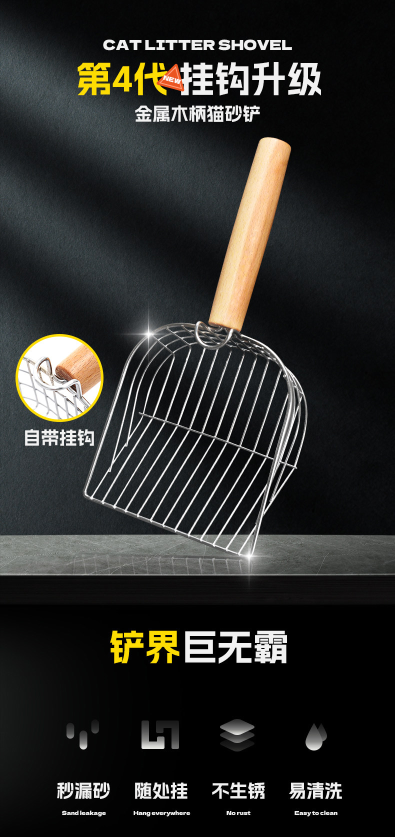 品名/Trade name | 金属木柄猫砂铲(平勾/圆钩勾/小号) |