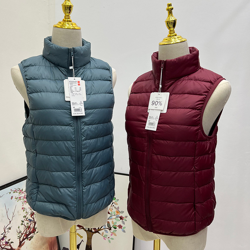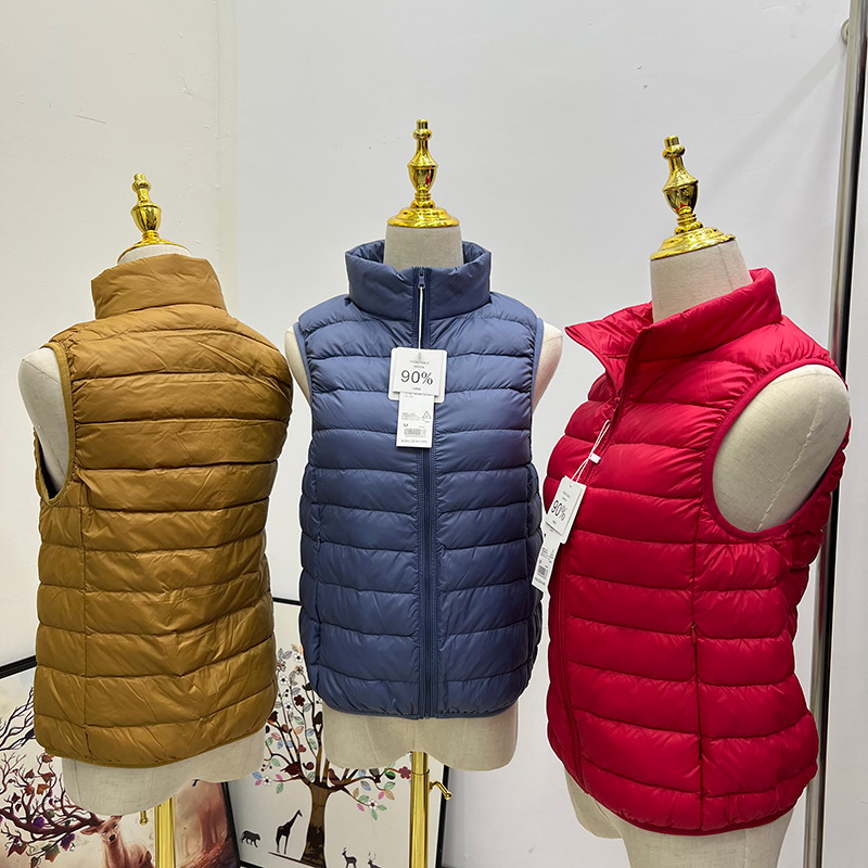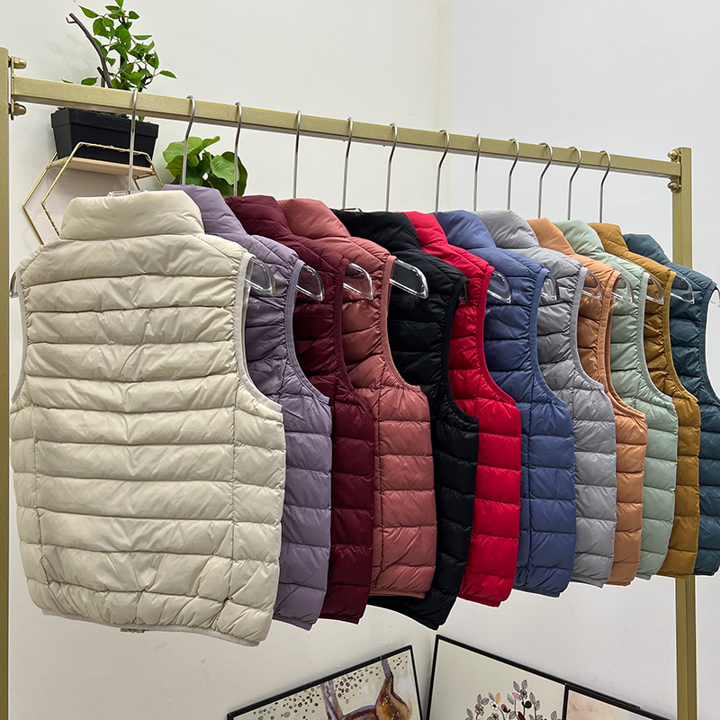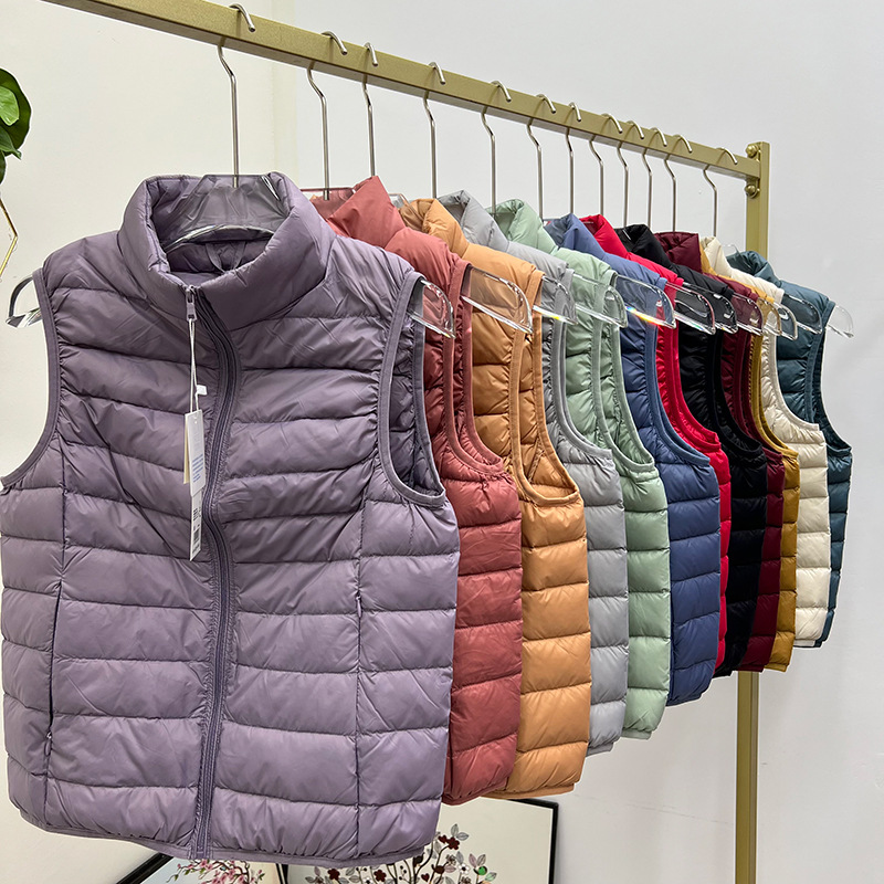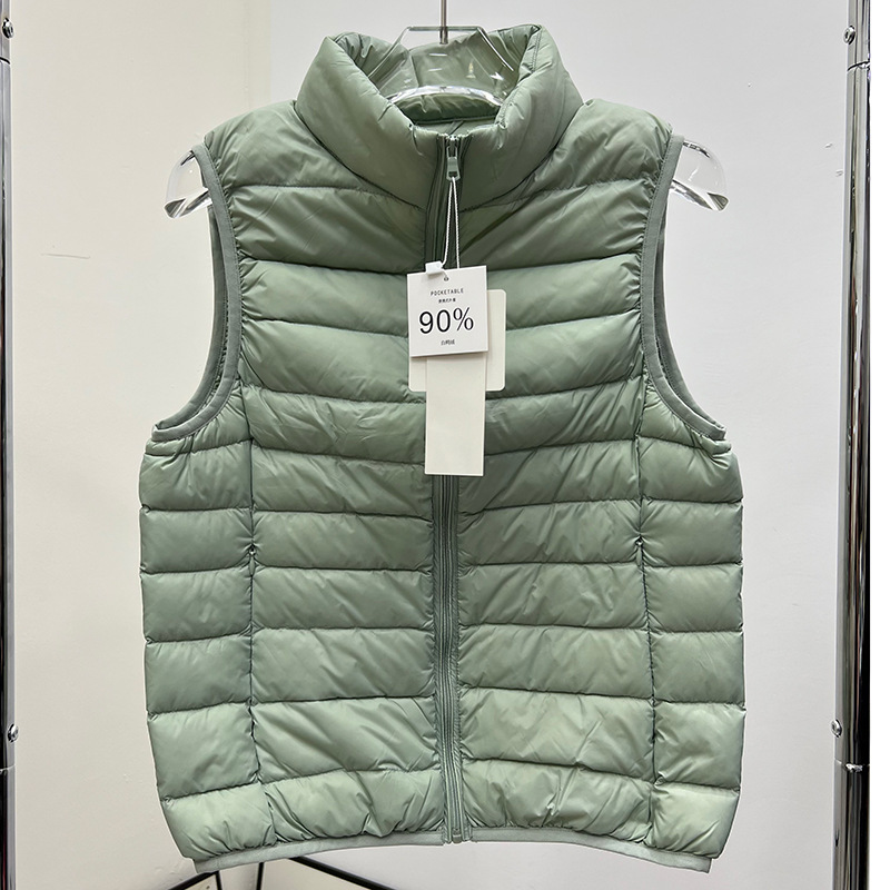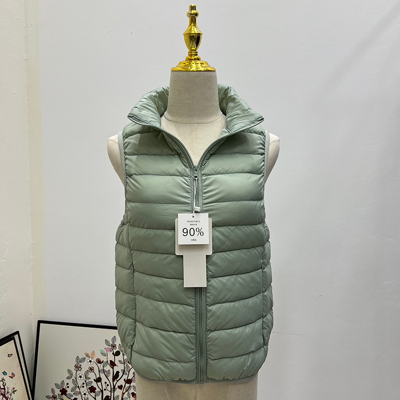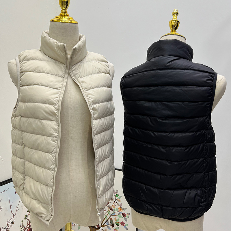 90% 화이트 오리 다운 패딩 라이트 다운 조끼 여자의 세로 칼라 하이 퀄리티 다운 재킷 조끼 휴대용 봄과 가을 겉옷