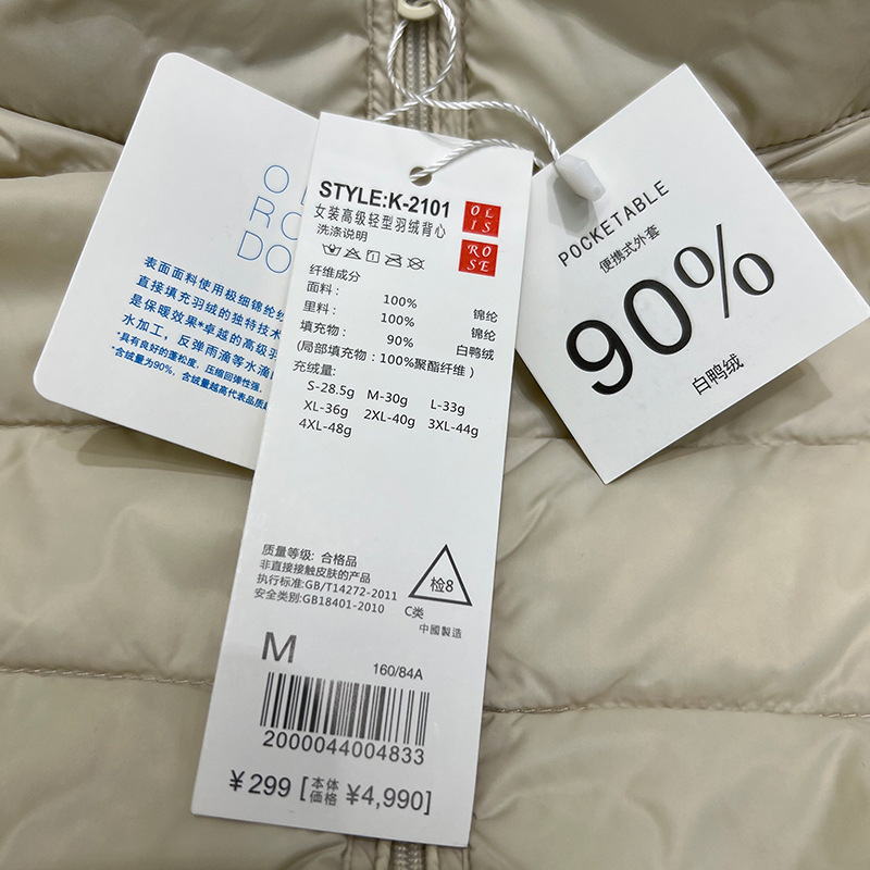 90% 화이트 오리 다운 패딩 라이트 다운 조끼 여자의 세로 칼라 하이 퀄리티 다운 재킷 조끼 휴대용 봄과 가을 겉옷스토어 가기