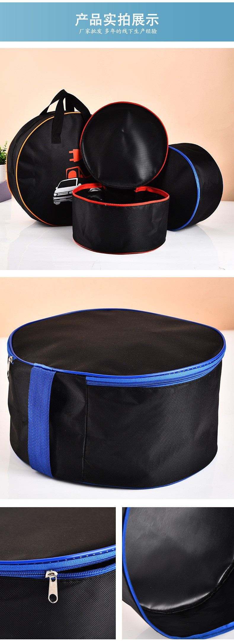 라운드 옥스포드 천 보관 가방 등산 캠핑 지퍼 가방 자동차 케이블 휴대용 핸드백 실린더 가방