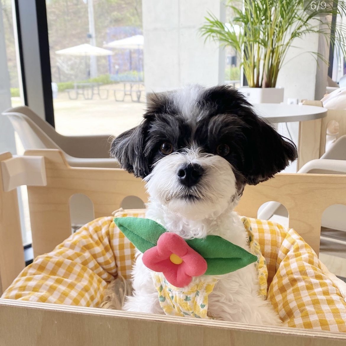한국 새로운 대비 색상 작은 꽃 스카프 고양이 개 나비 넥타이 장식 칼라 애완 동물 용품 사진