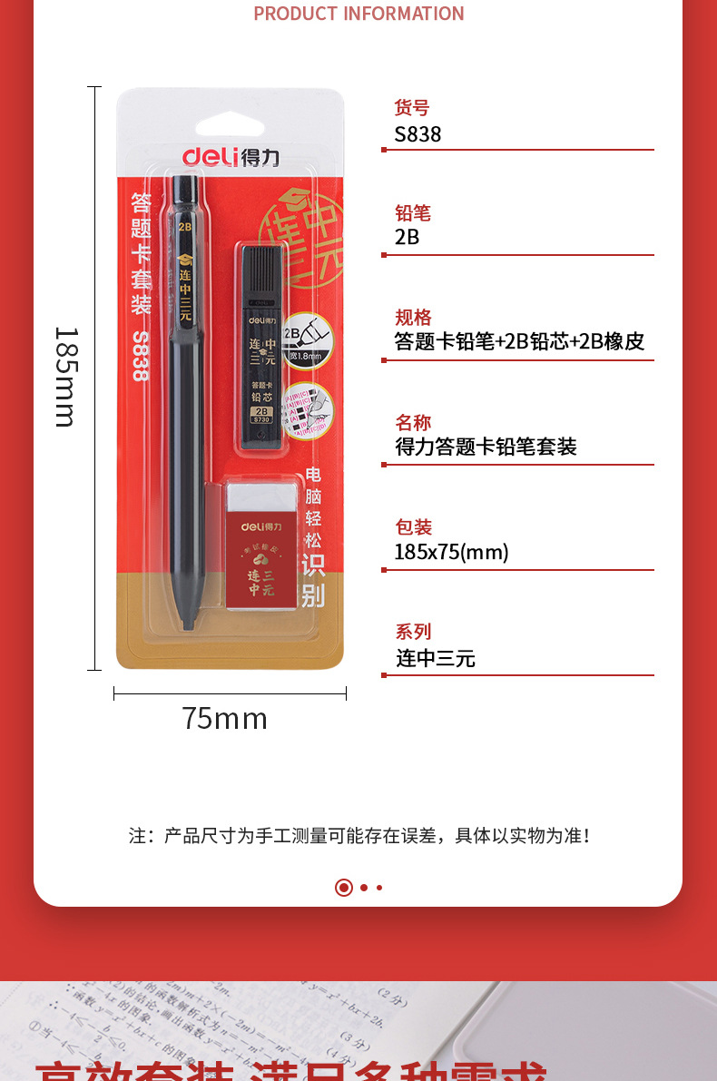 • [싱글] 델리 S835 리틀리 3원 답안지 연필 2B(검정)(1개)