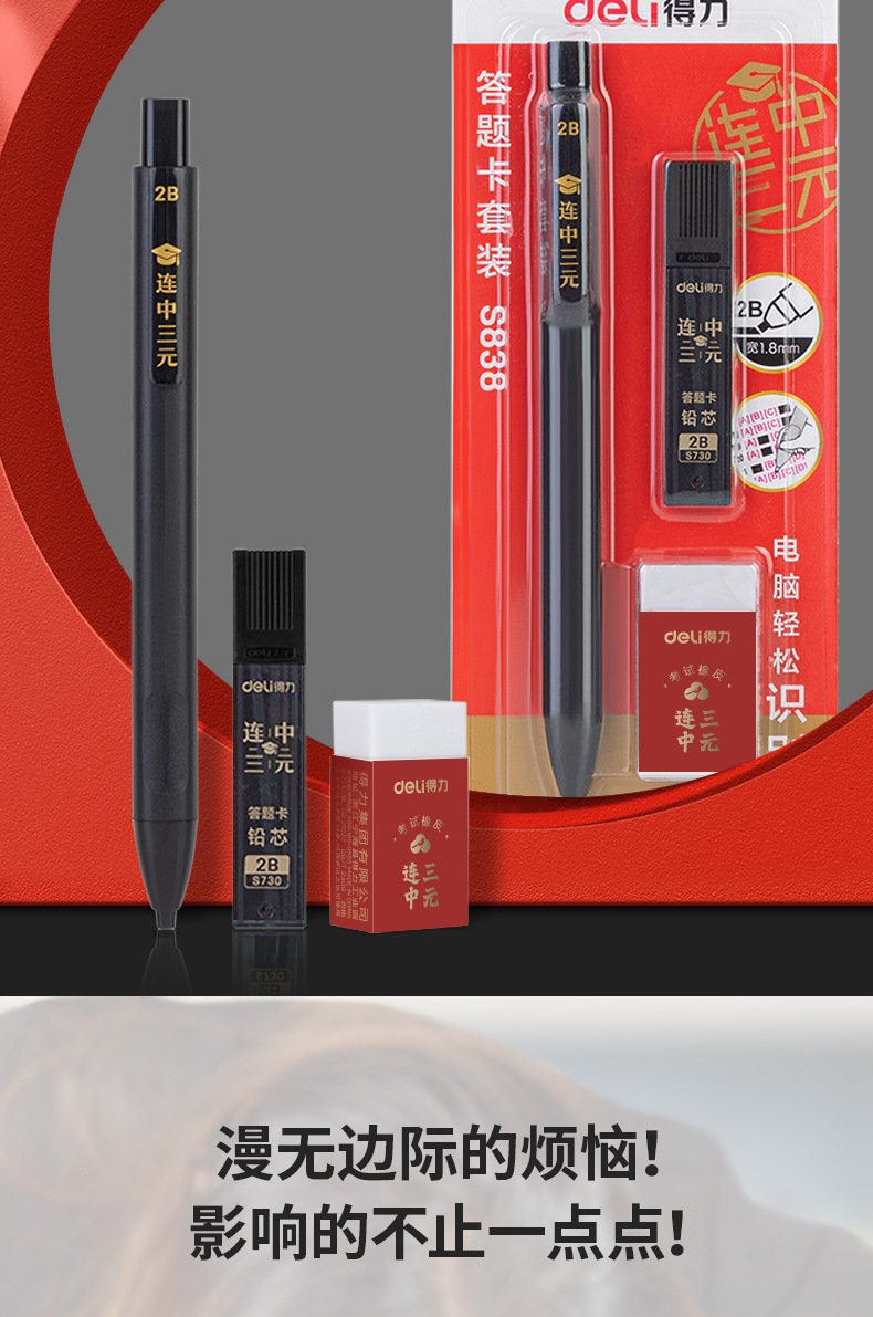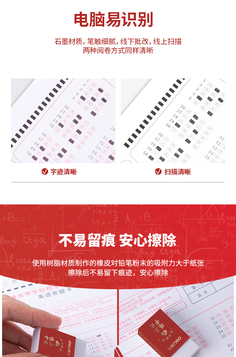델리 문구 응답 카드 연필 기계 연필 2B 컴퓨터 카드 펜 카드 리드 테스트 고무 세트