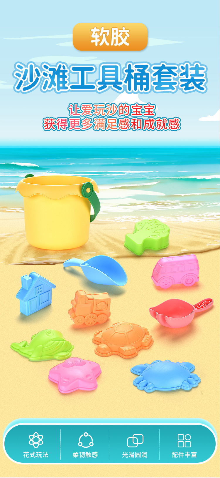 어린이 부드러운 고무 낙하 방지 비치 버킷 세트 야외 작은 삽 모래 파기 소년과 소녀를위한 어린이 눈 놀이 장난감스토어 가기