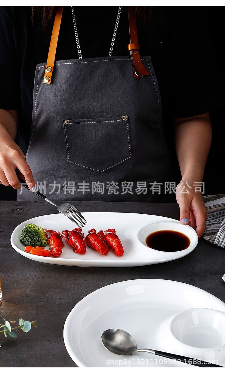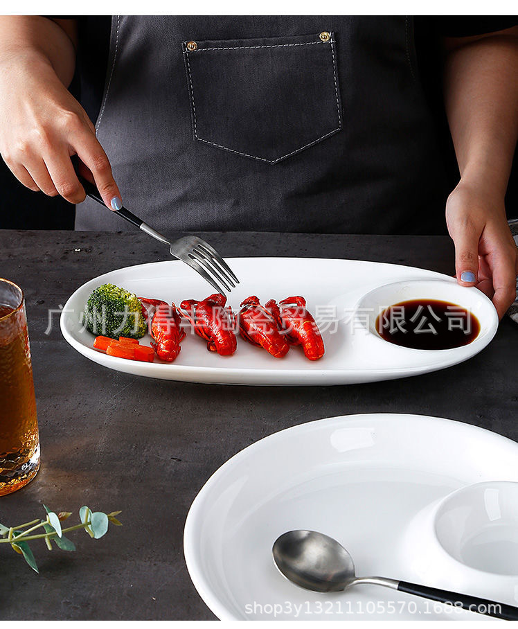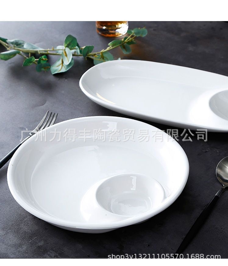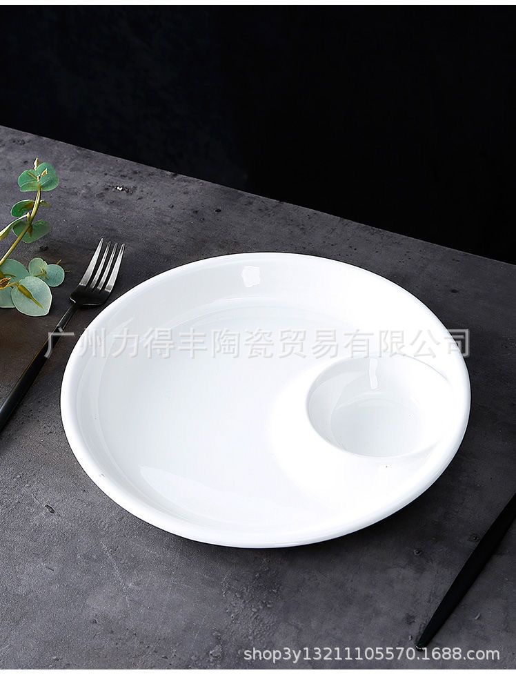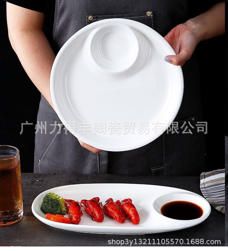 유럽식 이중 접시 스시 접시 세라믹 원형 칸막이 접시와 식초 접시, 만두 접시, 요리 접시, 식기 트레이스토어 가기
