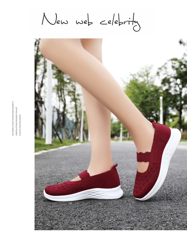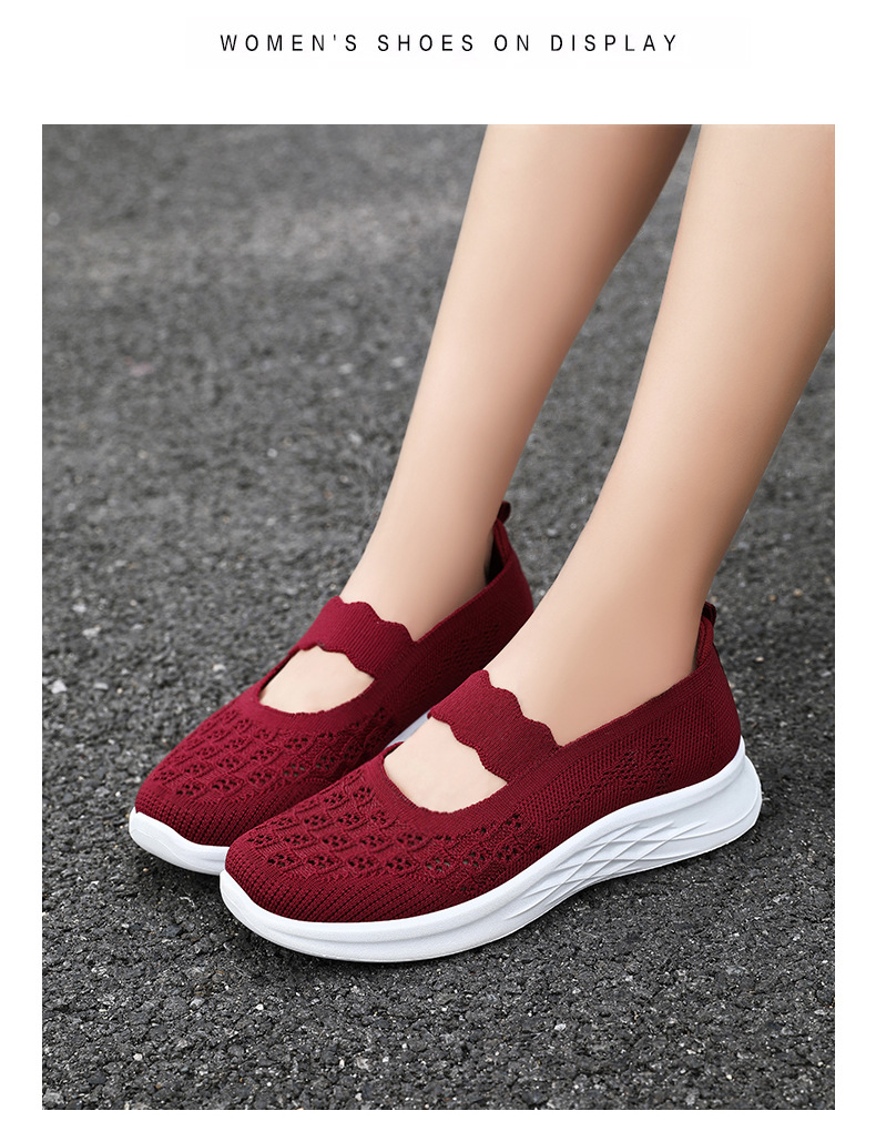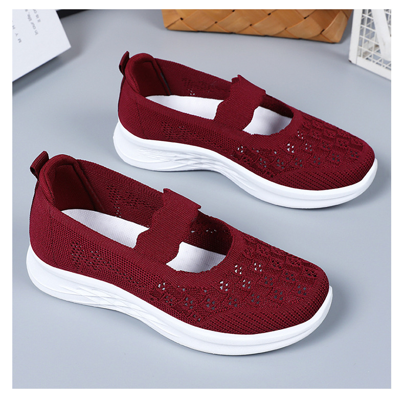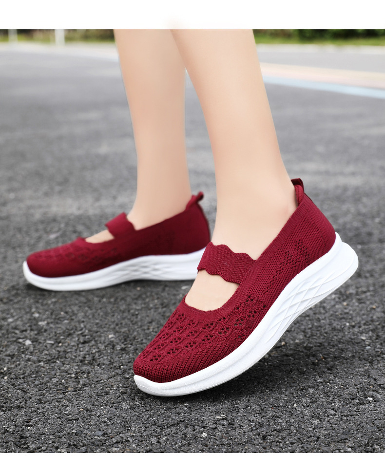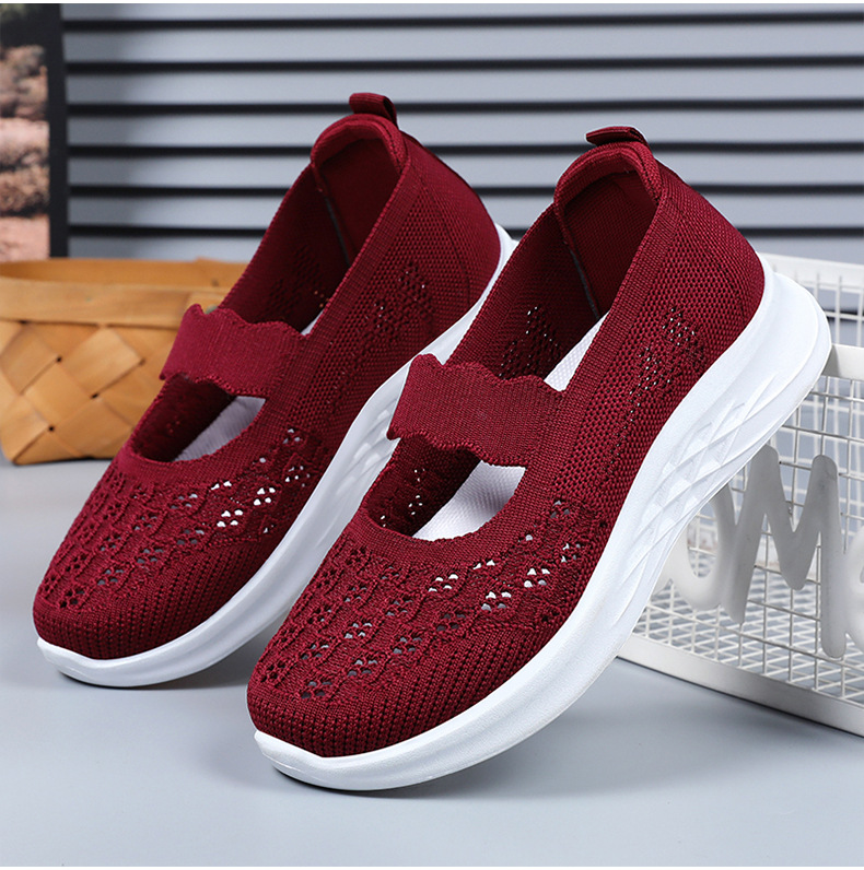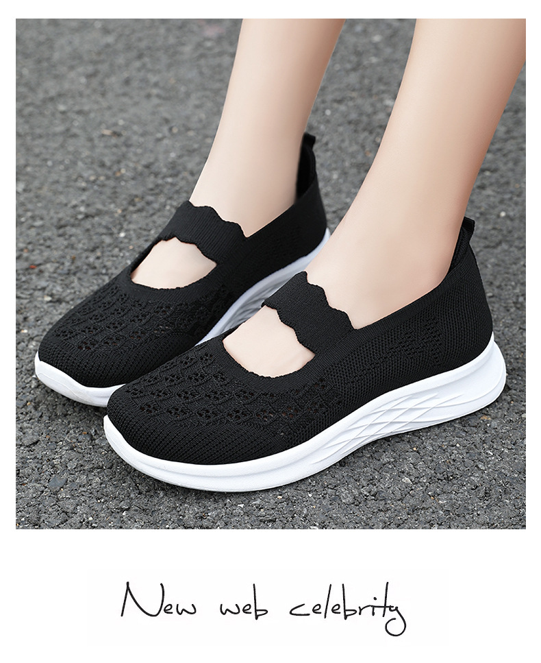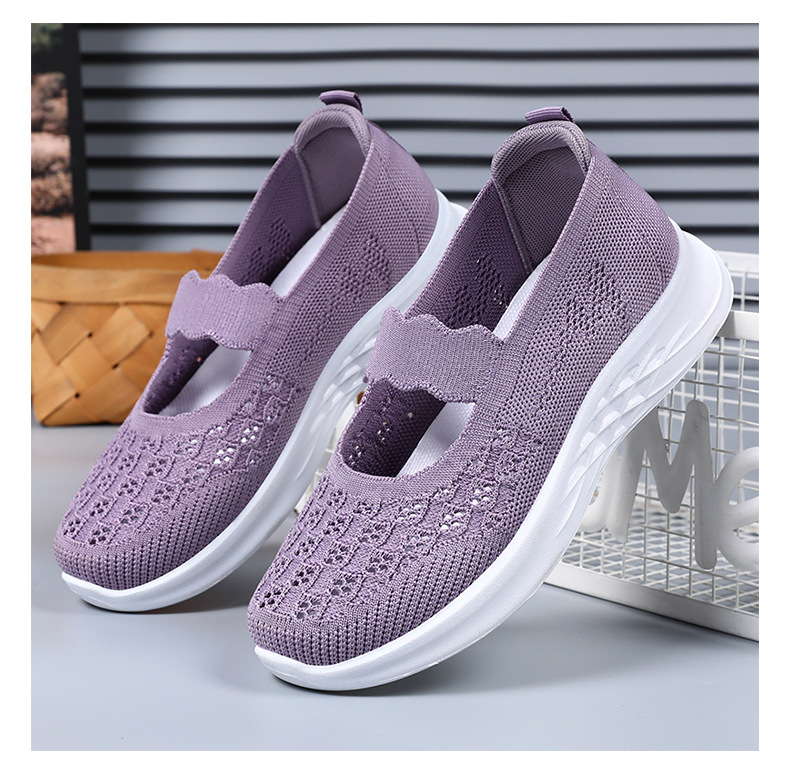 중노년 여성을 위한 신발, 운동화, 어머니 신발, 부드러운 밑창의 플라이 니트 신발, 통기성이 좋은 중공 신발, 다용도 여성 신발