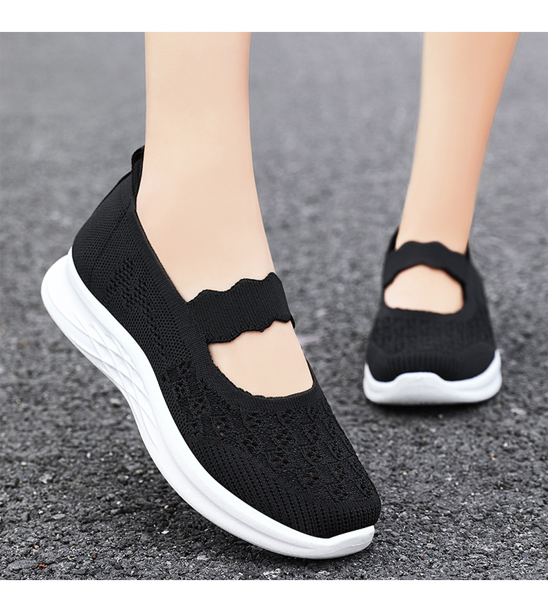 중노년 여성을 위한 신발, 운동화, 어머니 신발, 부드러운 밑창의 플라이 니트 신발, 통기성이 좋은 중공 신발, 다용도 여성 신발스토어 가기