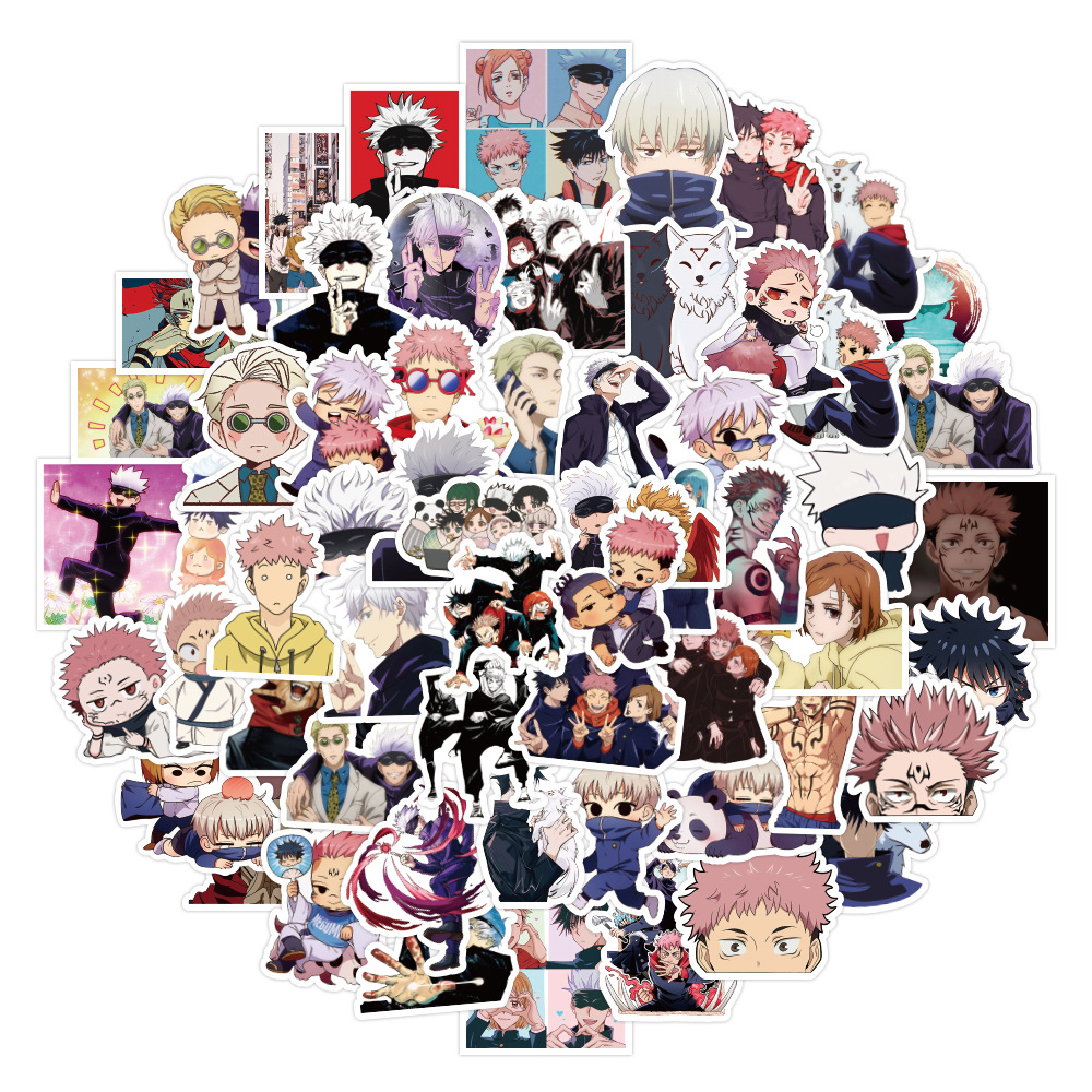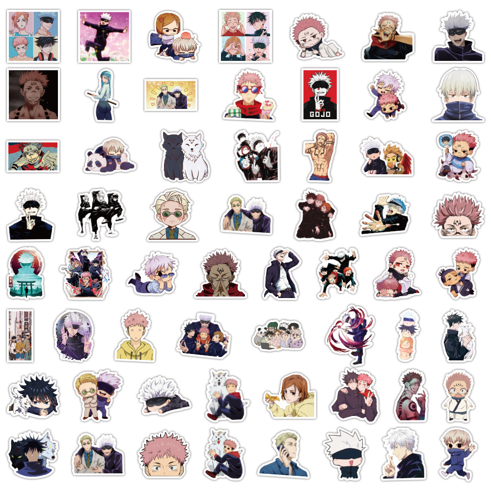 60/100장 일본 만화 전 시리즈 만화 스티커 귀멸의 칼날 마법의 전투 창의적 장식 휴대폰 케이스 물컵 스티커스토어 가기