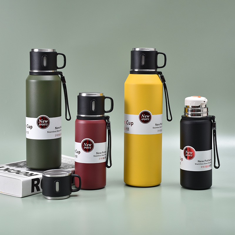 316 스테인레스 스틸 대용량 스포츠 주전자 야외 휴대용 보온병 컵 남녀 여행 등산 스튜 주전자 도매