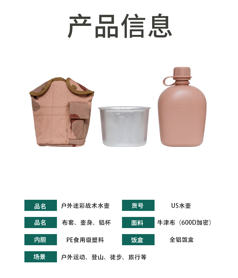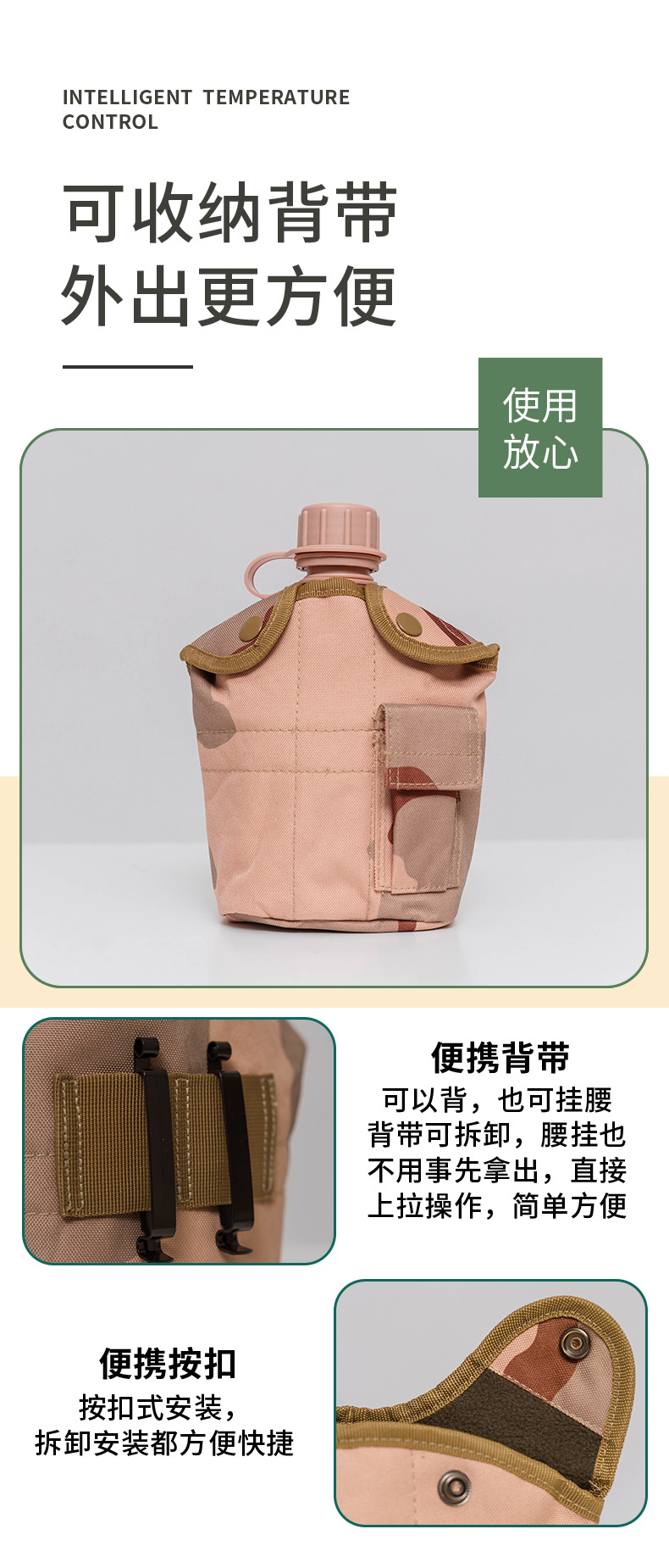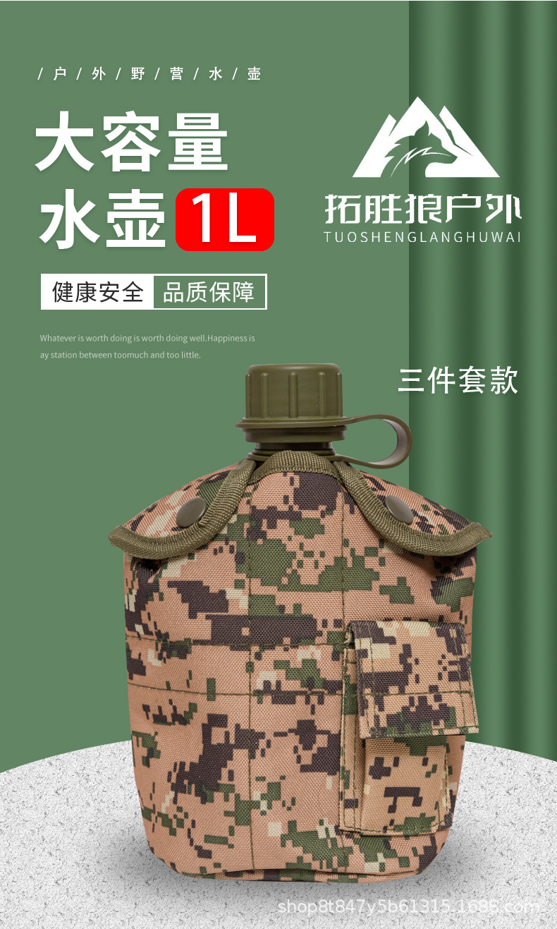 카세트형 아웃도어 물병, 등산 및 캠핑 스포츠 휴대용 야외 확장 훈련 특수 1.75L 위장 물병