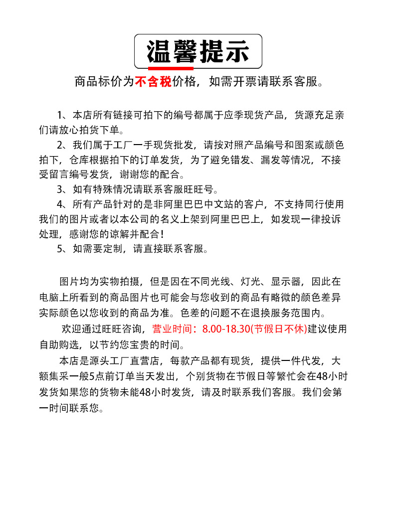 1688온라인 사이트에서 검색된 상품입니다. 알리타플에서는 상품검색/현지구매(구매대행)/국제배송 업무만 제공해드립니다. 해당 상품의 품질 및 상태에 대해서는 확인해 드릴 수 없고 해당 물건이 입고가 된 후에 검수과정을 거쳐야 확인이 가능합니다.