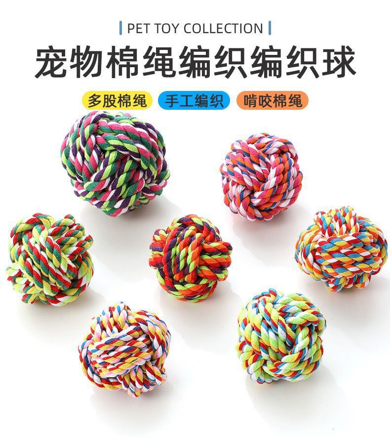 공장 애완 동물 면화 로프 공 손으로 짠 개 어금니 장난감 물기 방지 공 개 물린 중형 및 대형 개 장난감스토어 가기