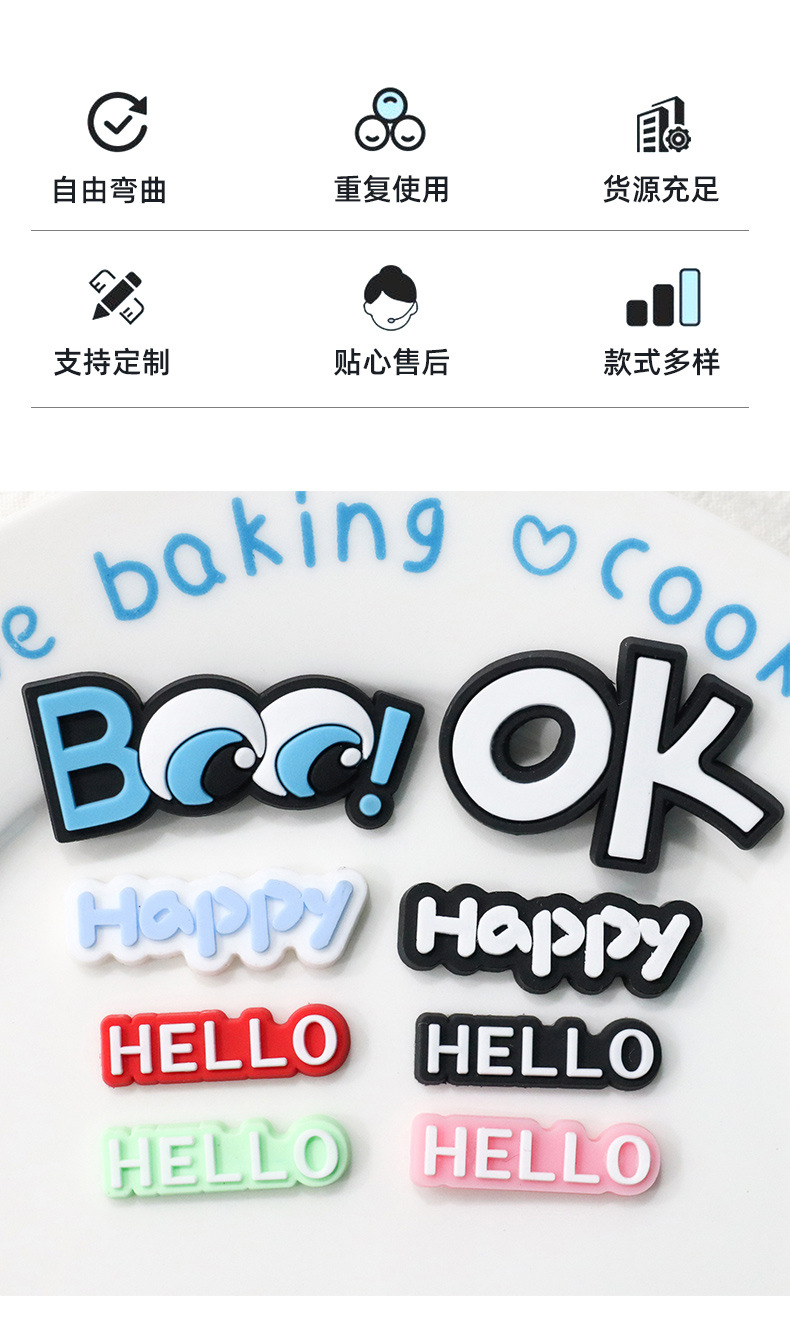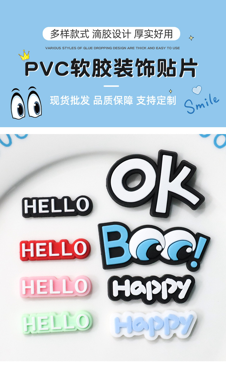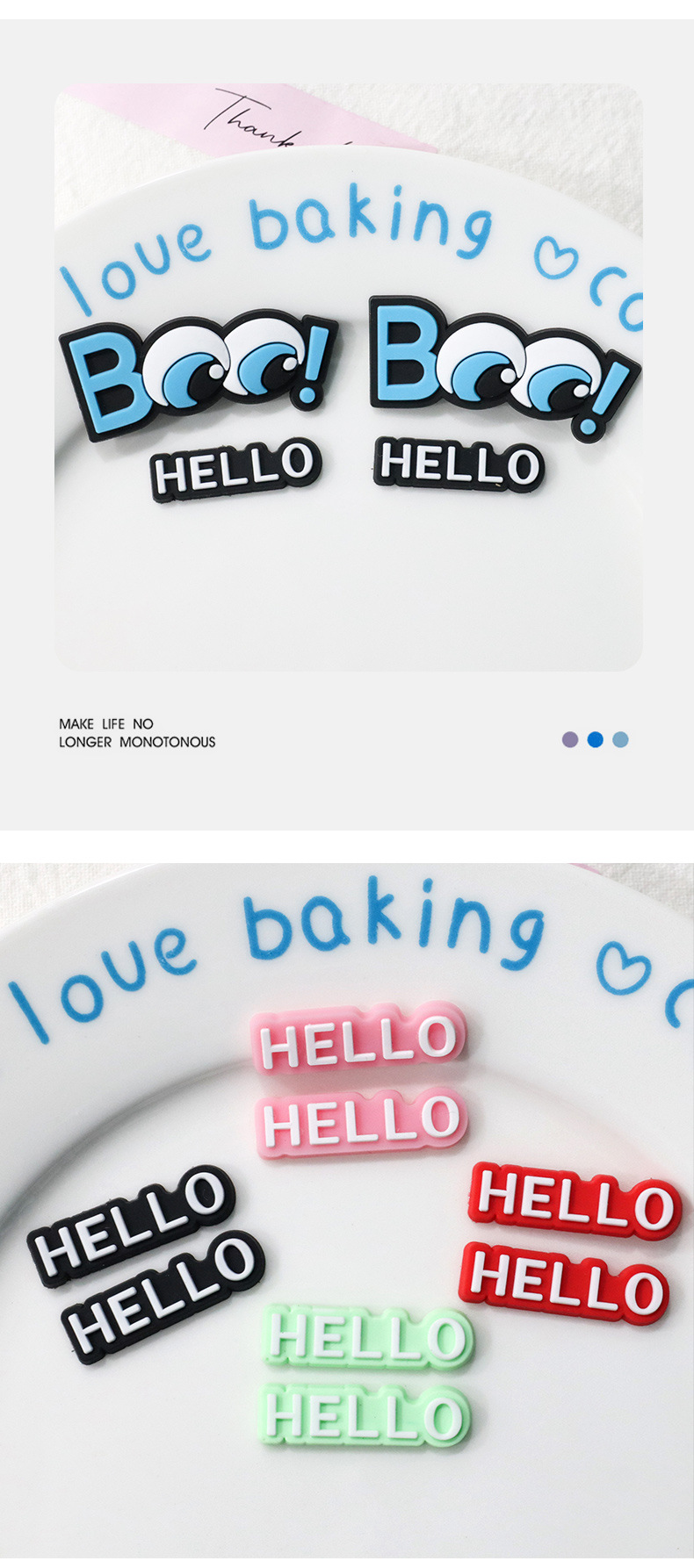 눈 HELLO 편지 부드러운 고무 장식 구멍 신발 꽃 신발 액세서리 PVC 귀여운 신발 버클 재고 도매