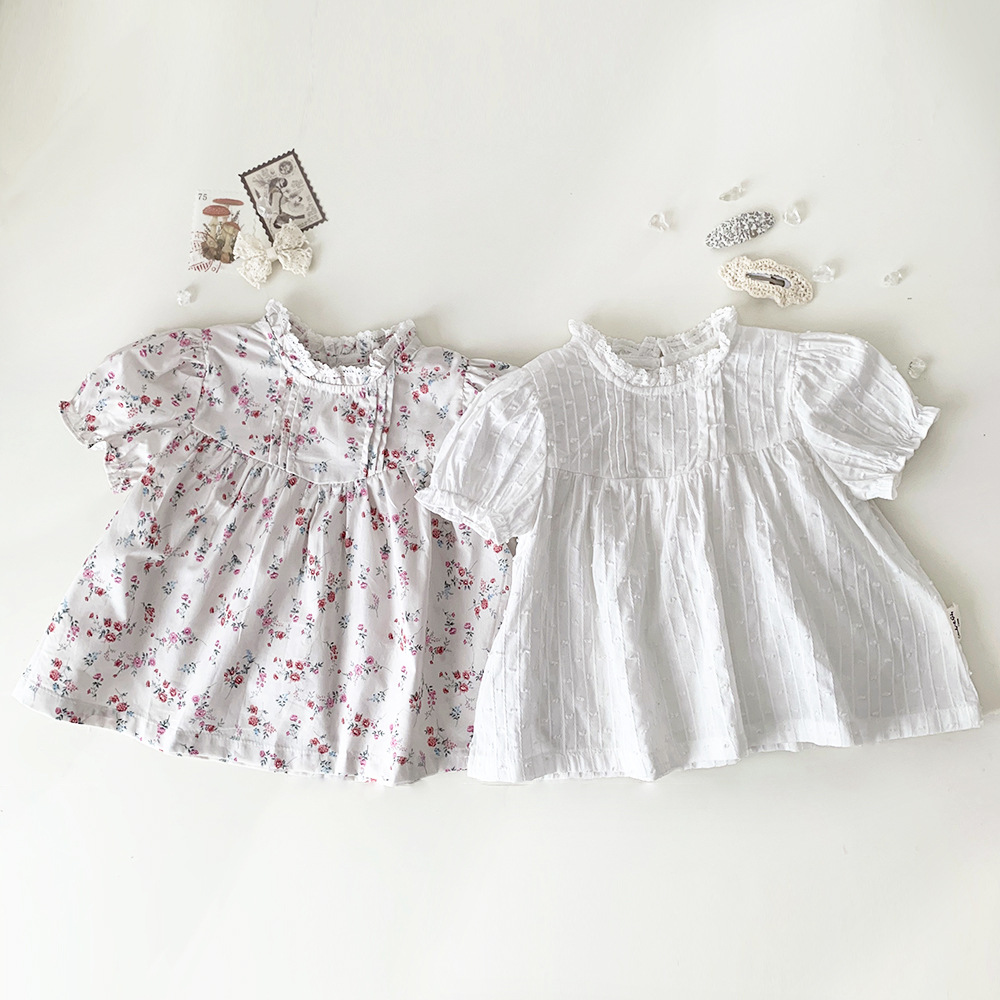 Cutemily 코튼 로터스 크루넥 셔츠 꽃 셔츠 부드러운 인형 퍼프 슬리브 셔츠스토어 가기