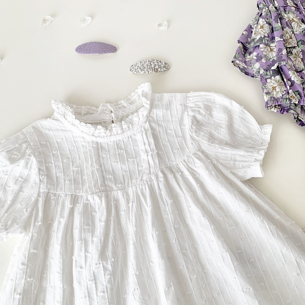 Cutemily 코튼 로터스 크루넥 셔츠 꽃 셔츠 부드러운 인형 퍼프 슬리브 셔츠