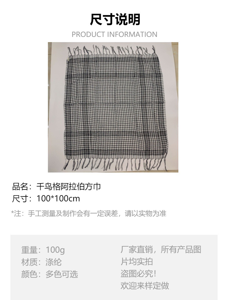 사방에 매달려있는 아랍 광장 스카프 houndstooth 대비 색상 아랍 터번 자카드 스카프 크로스 보더 공장 직선스토어 가기