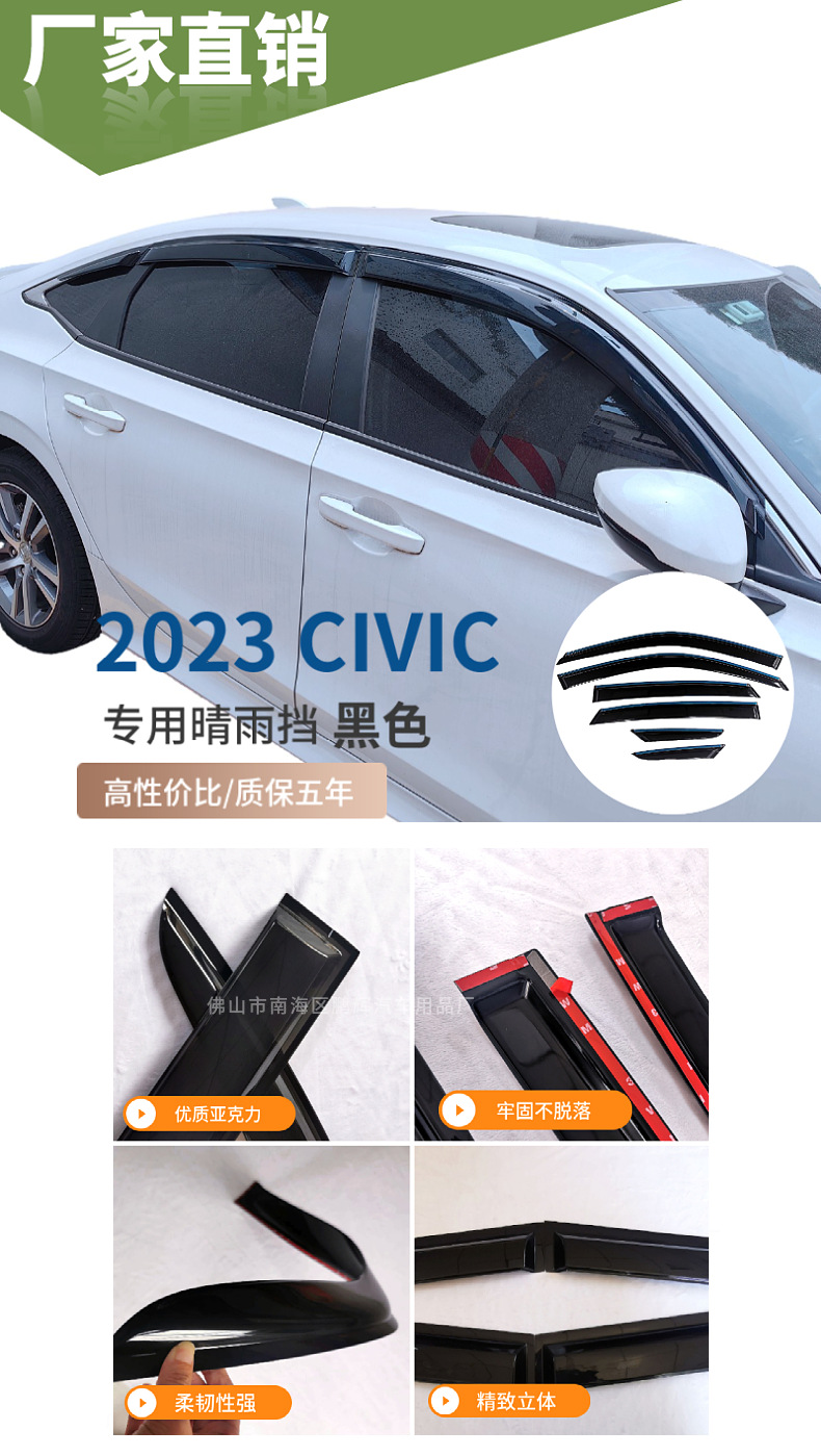 혼다 CIVIC 2023 써니 레인 쉴드 자동차 창 비 눈썹 차양 6 조각 레인 쉴드에 적합스토어 가기
