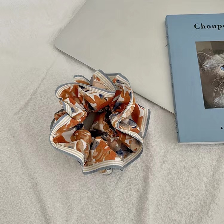 2025년 신상 한국 레트로 스타일 꽃무늬 천 머리끈 봄 여름 예술적 배색 헤어밴드 여성용 헤어 액세서리