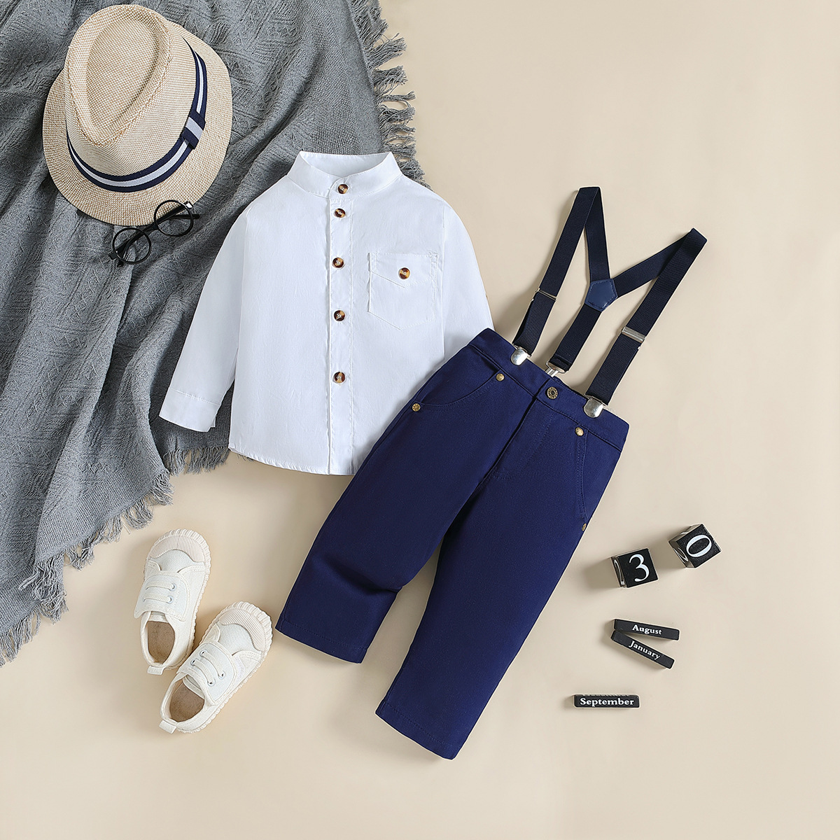 영국 스타일 소년 신사 세트 2023 봄과 가을 아동 패션 옷 긴팔 셔츠 멜빵 3 종 세트