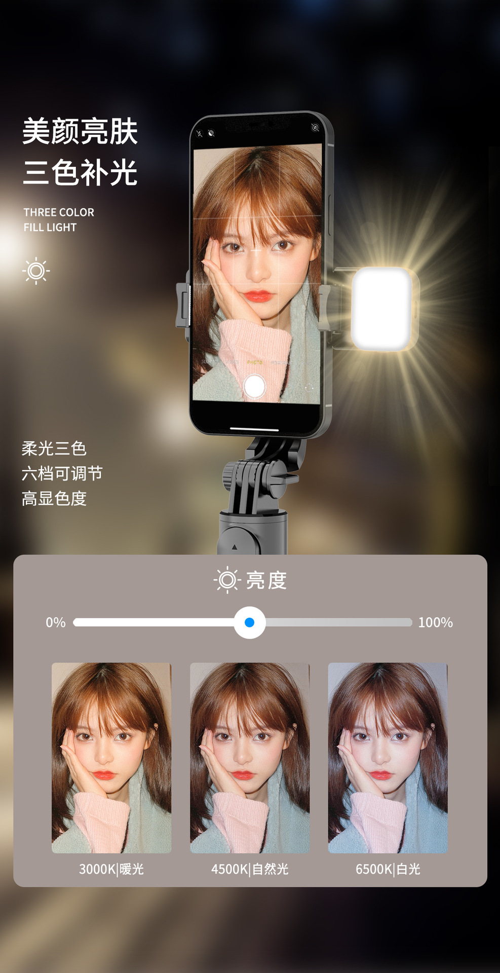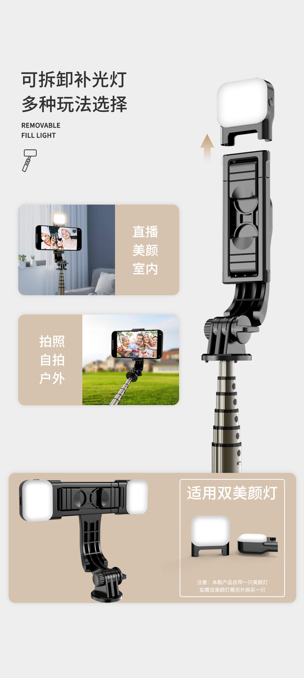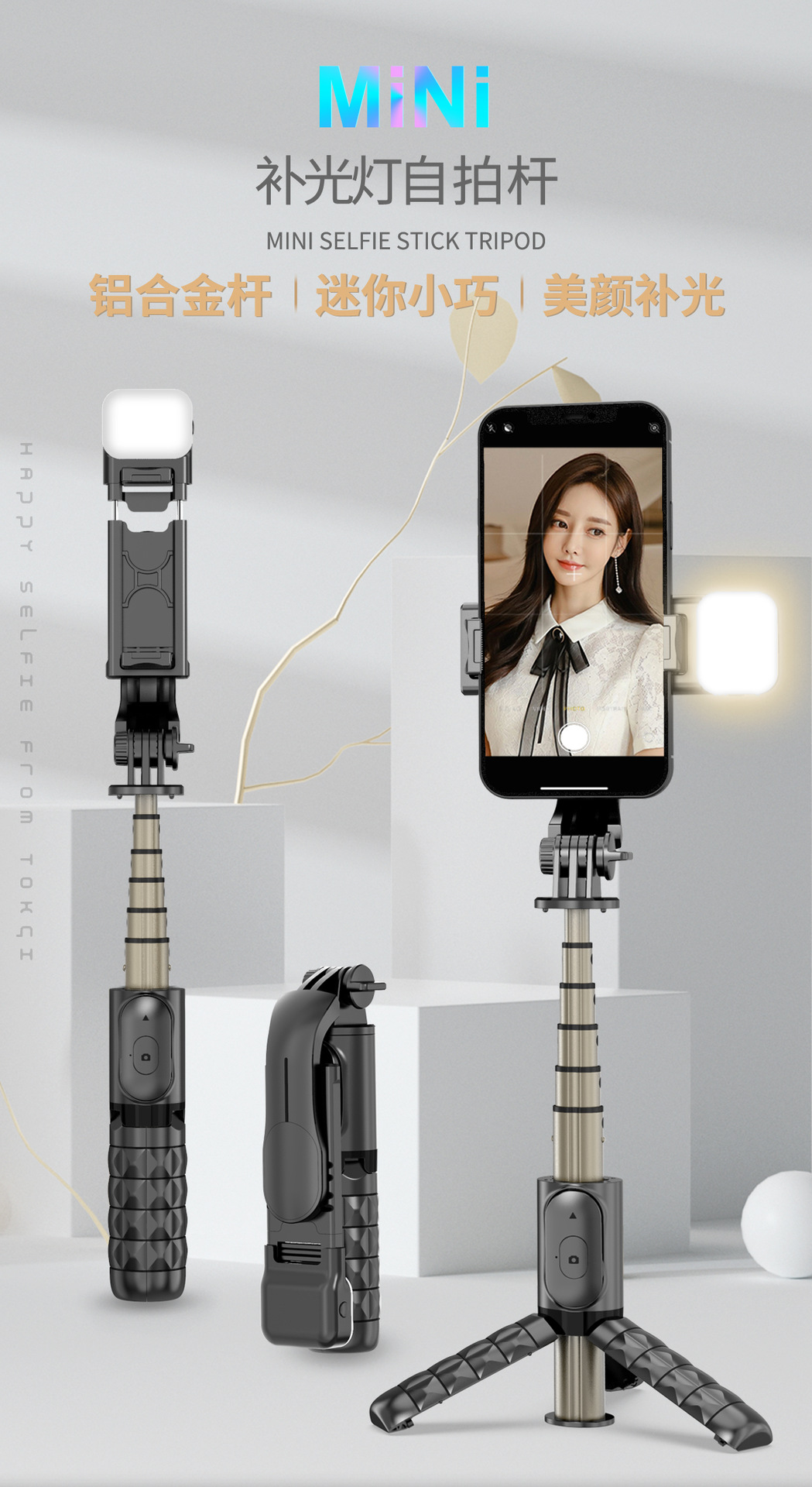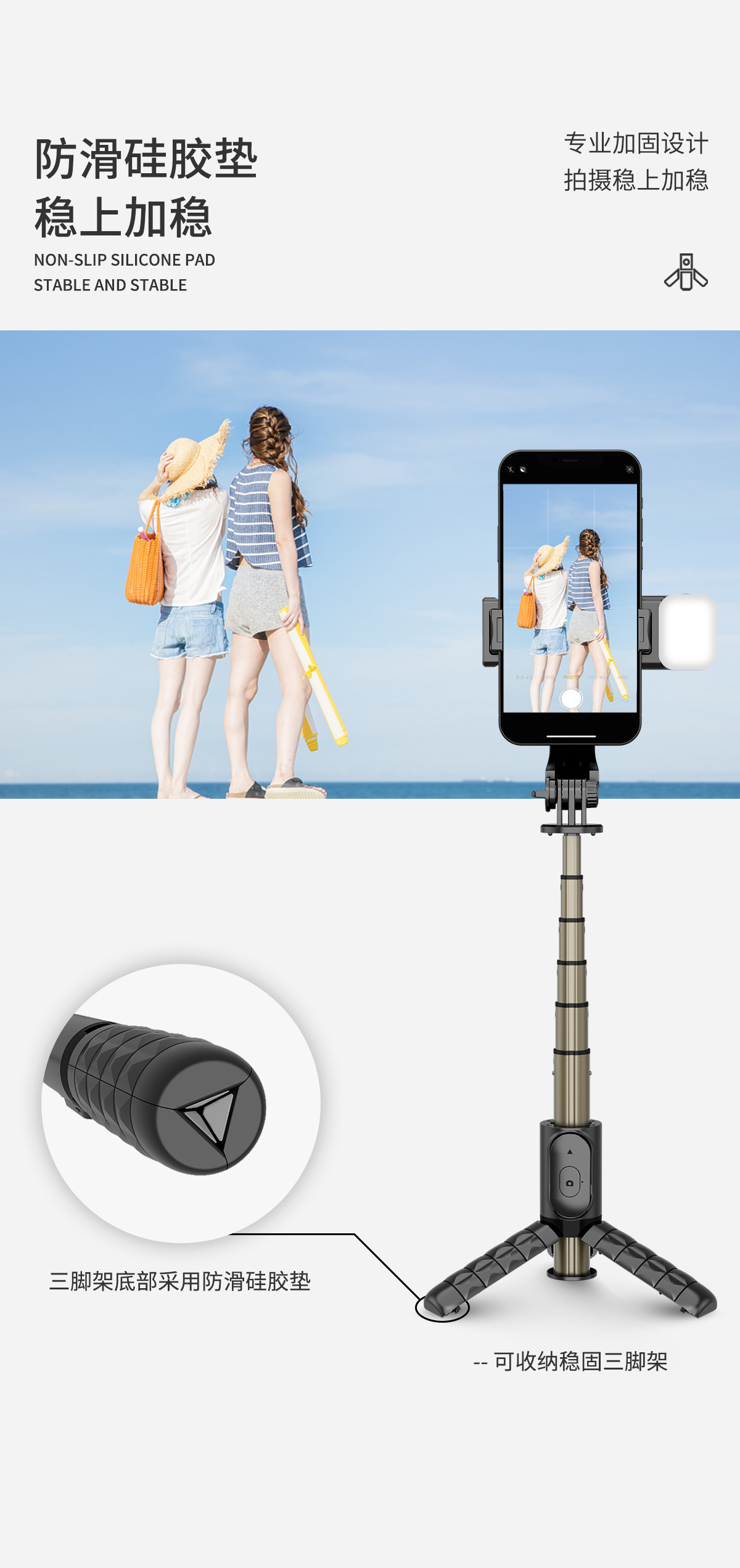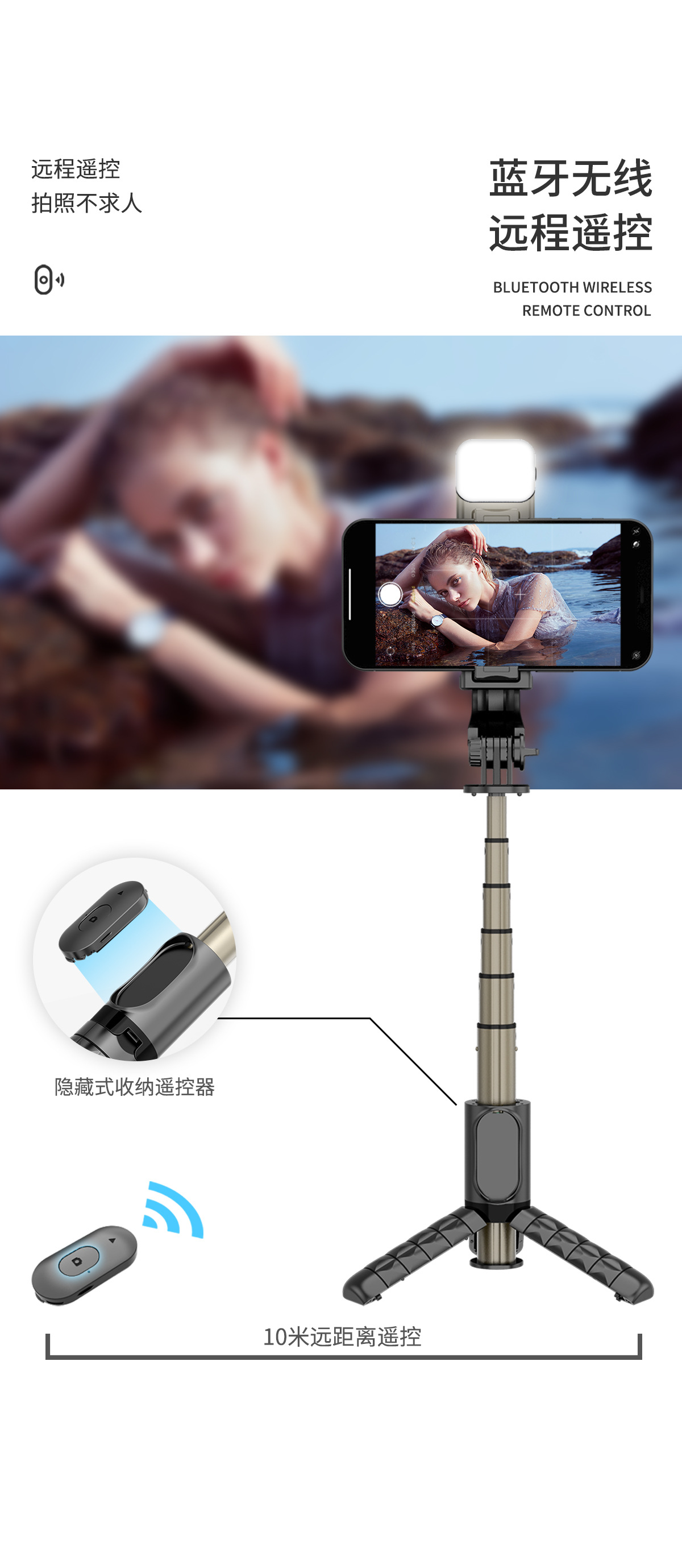 휴대 전화 블루투스 셀카 스틱 라이브 방송 브래킷 빛 강화 통합 휴대용 텔레스코픽 폴 데스크탑 삼각대와 아름다움