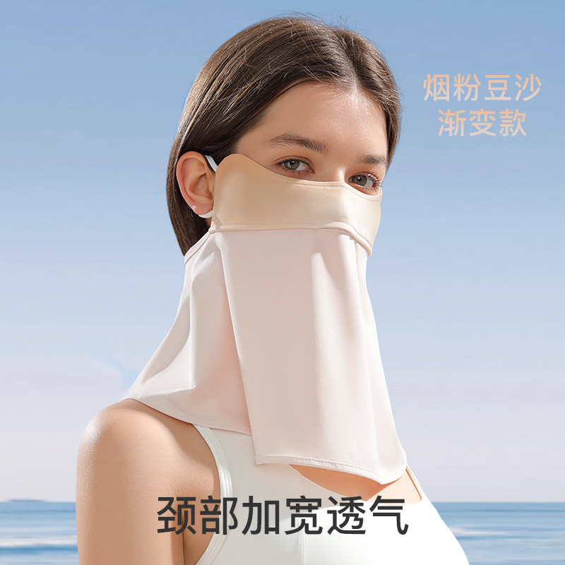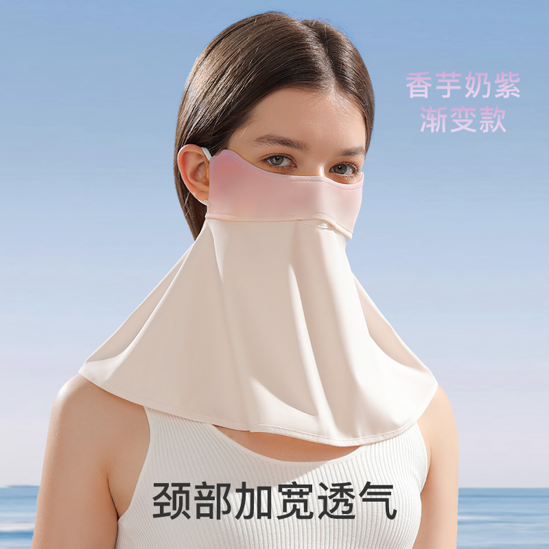 그라디언트 아이스 실크 자외선 차단제 페이스 타올 베일 여성용 여름 라이딩 풀 페이스 UV 보호 목 보호