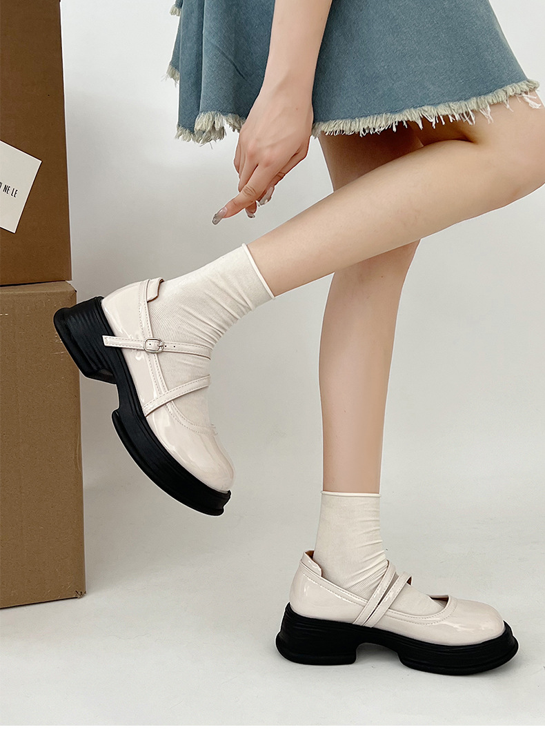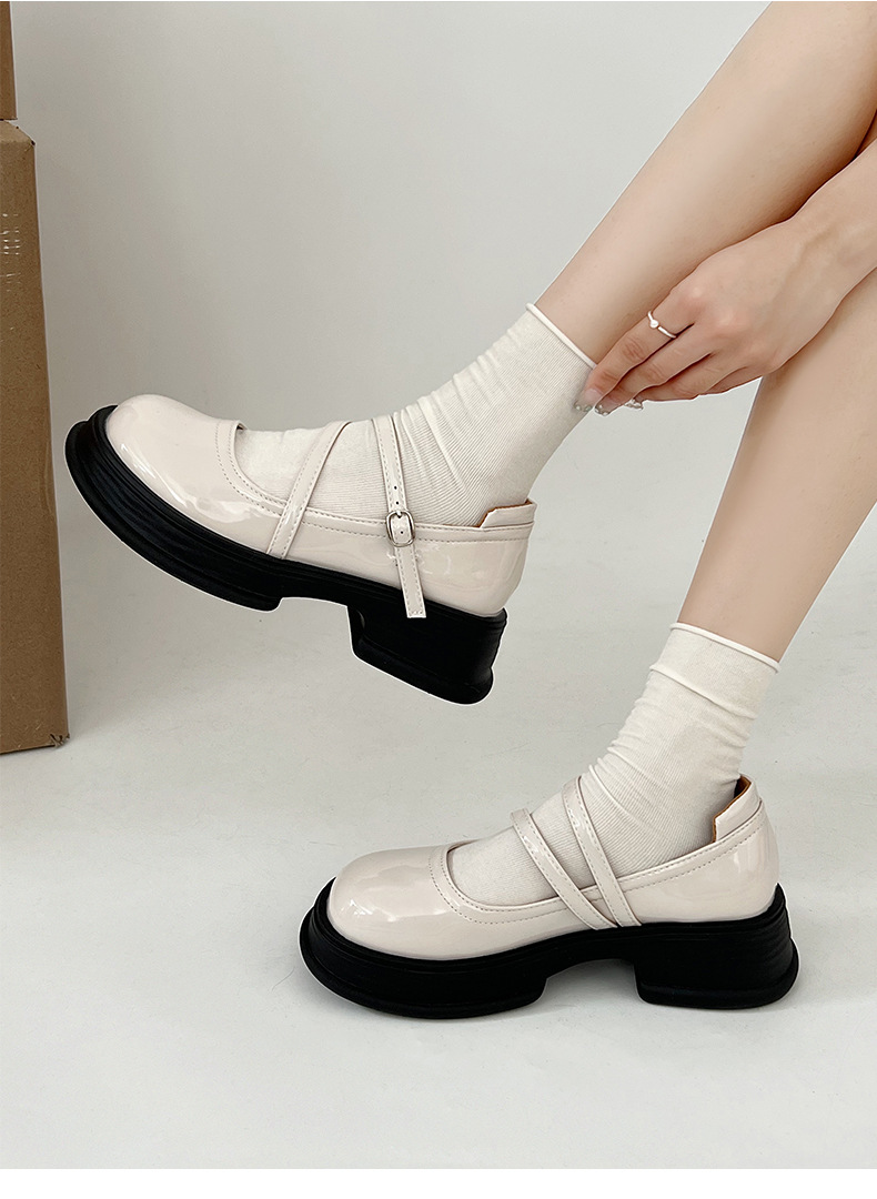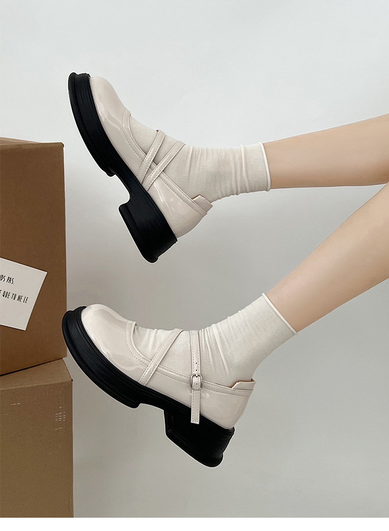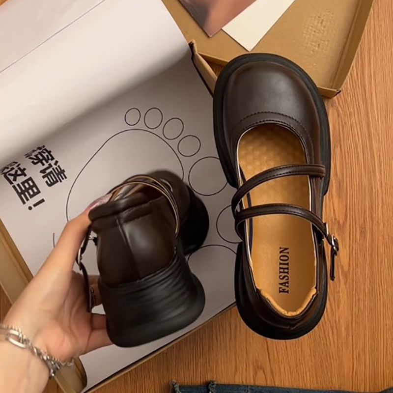 여성을위한 둥근 발가락 두꺼운 뒤꿈치 두꺼운 밑창 작은 가죽 신발 여름 새로운 복고풍 일본 로리타 메리 제인 신발