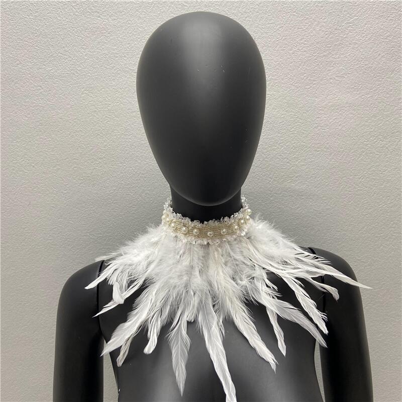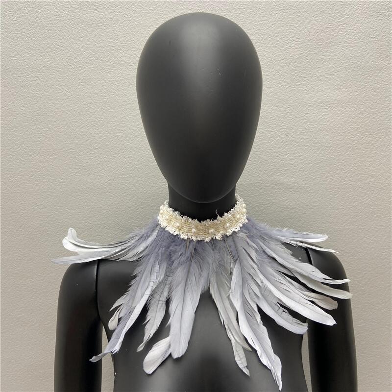 아마존 고딕 깃털 스카프 할로윈 스카프 크리스마스 멋진 원피스 볼 액세서리 가짜 칼라
