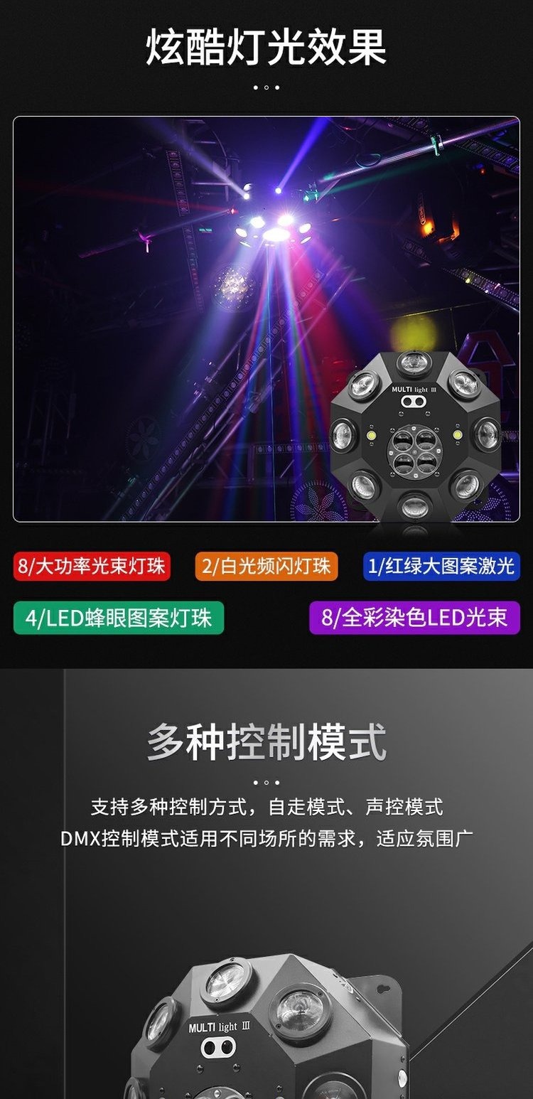 패튼 파이브 인 원 꿀벌 눈 레이저 라이트 다채로운 음성 제어 KTV 룸 레이저 라이트 바 클리어 바 회전 효과 조명스토어 가기
