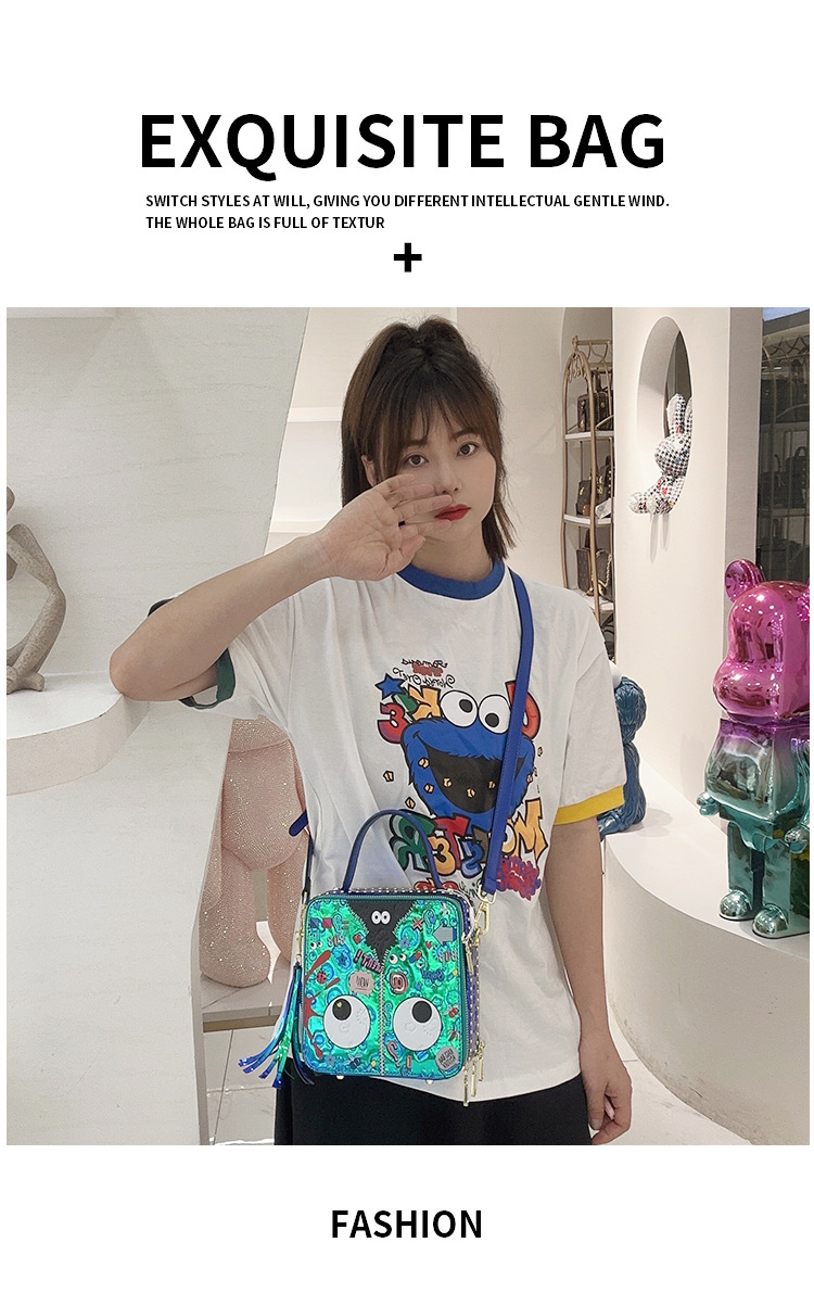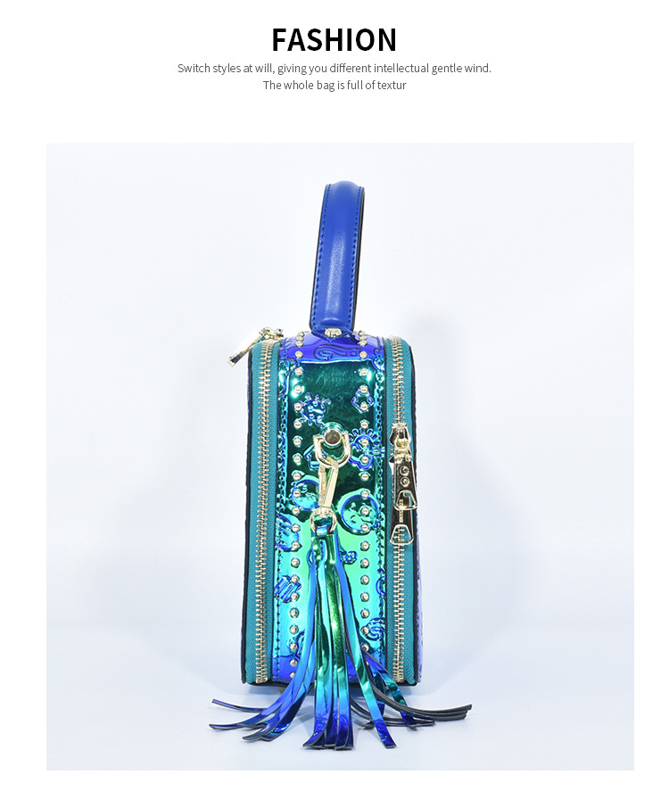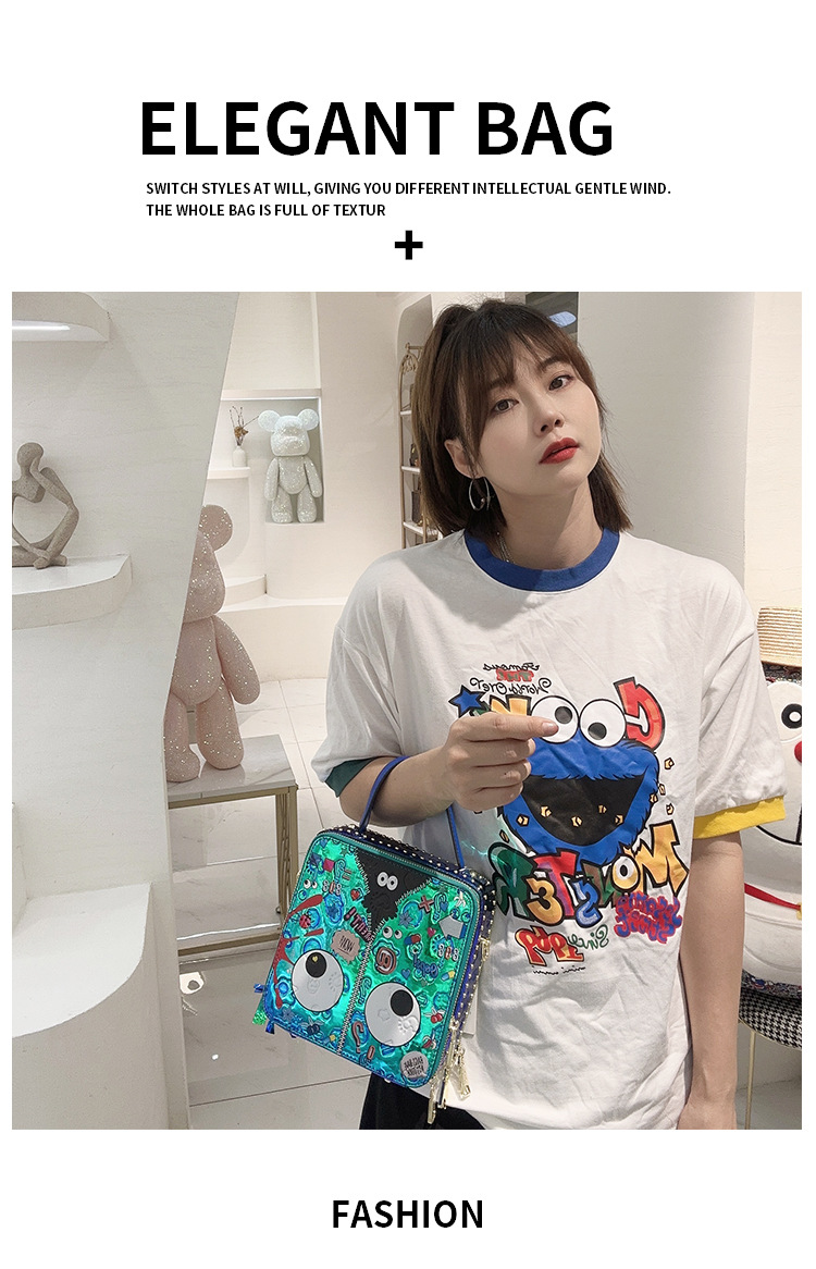 다채로운 특수 소재 레이저 여성용 작은 사각형 가방 지퍼 휴대용 크로스 바디 백 인쇄 양각 귀여운 트렌디 한 가방스토어 가기